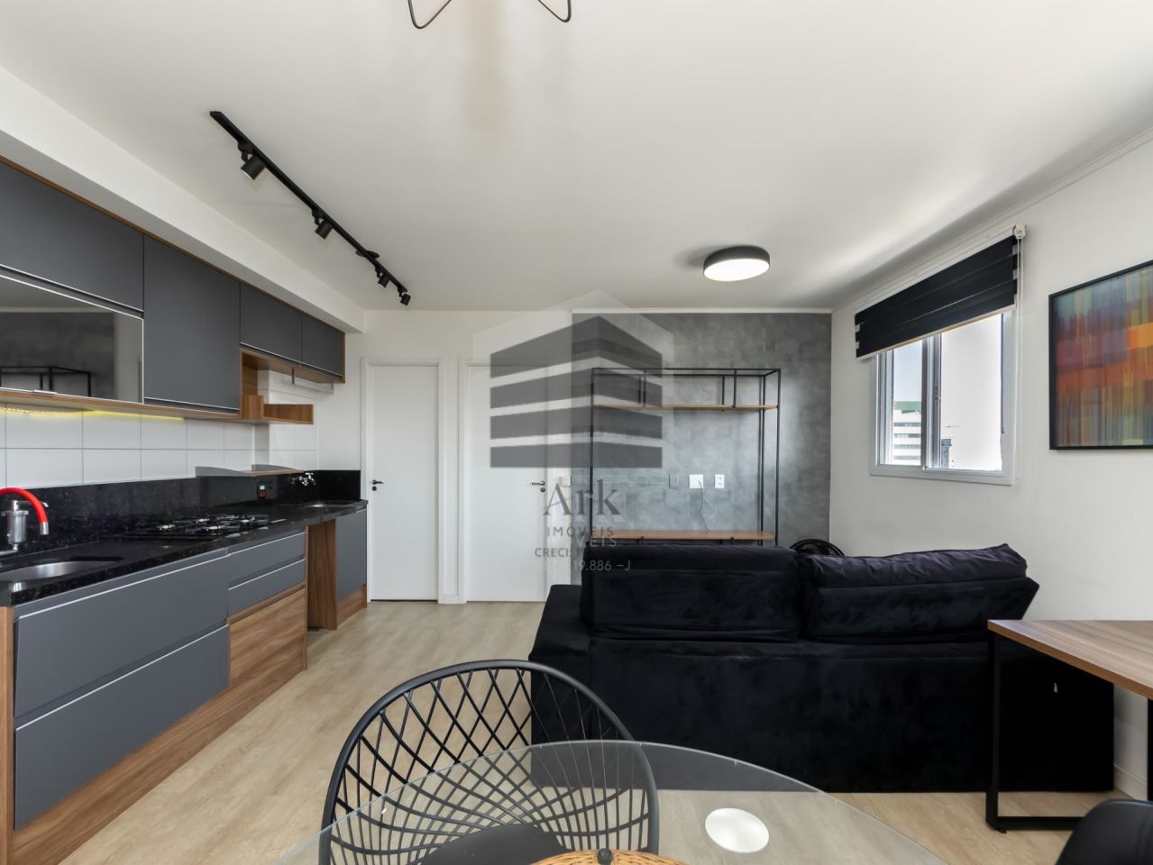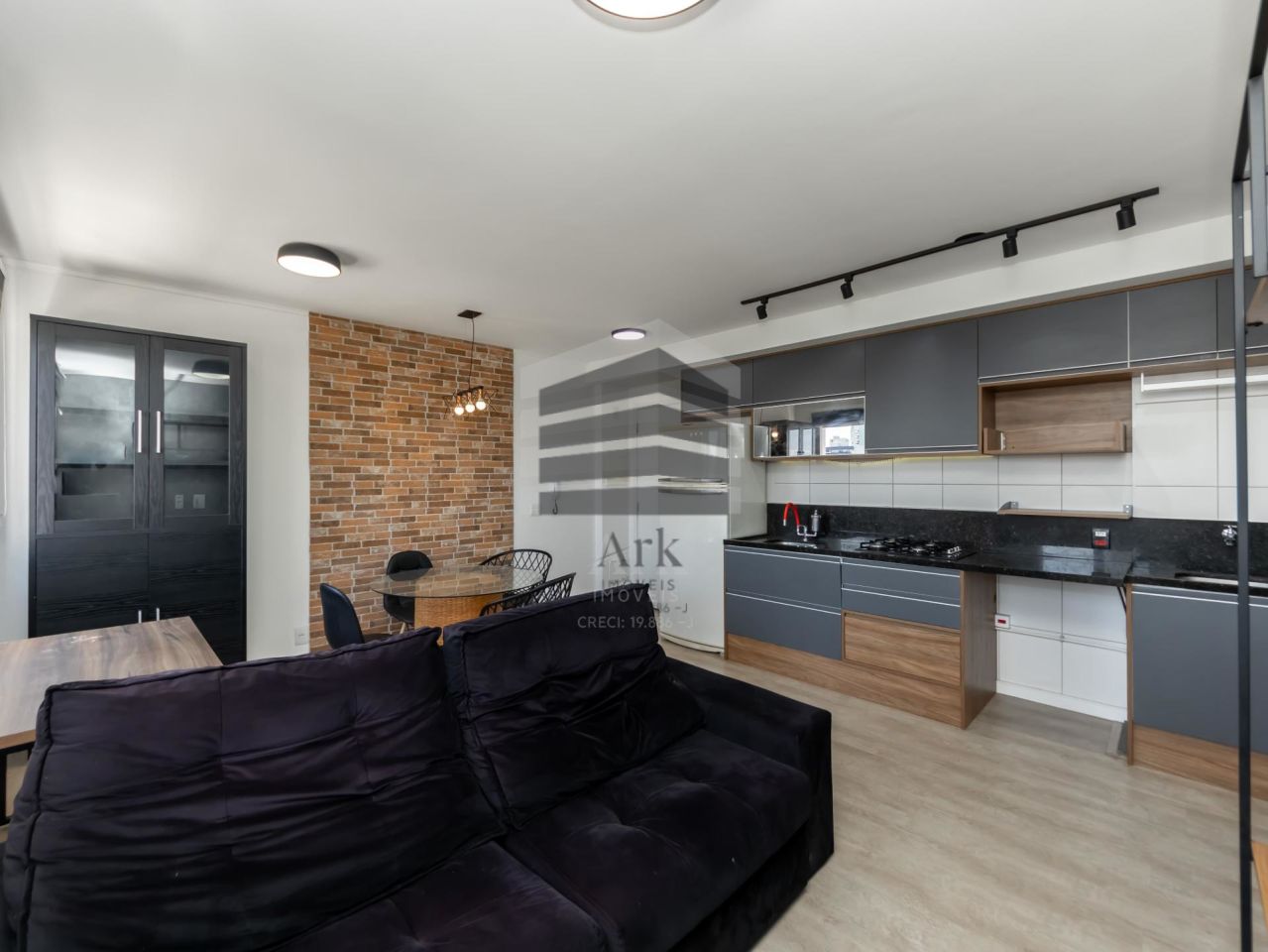 Sala ampla integrada com a cozinha, ideal para relaxar, assistir a um filme ou receber amigos com o charme de um espaço aberto.