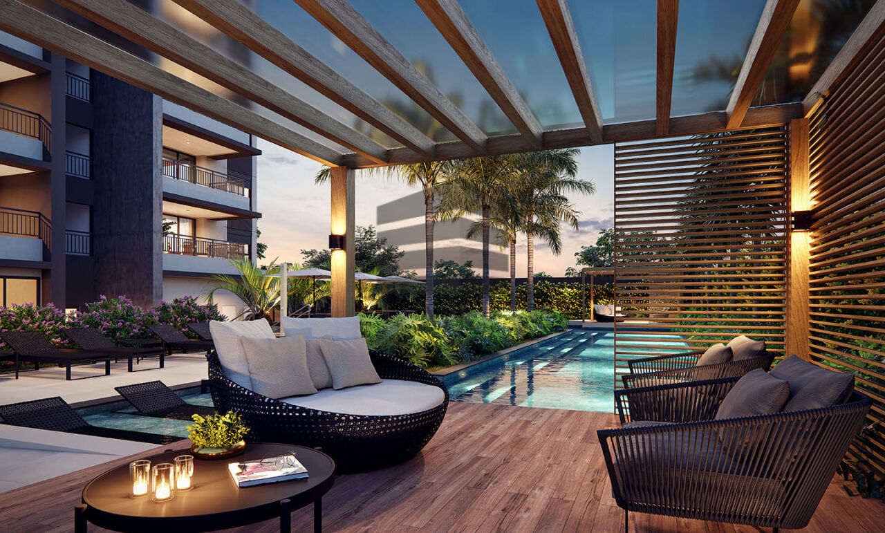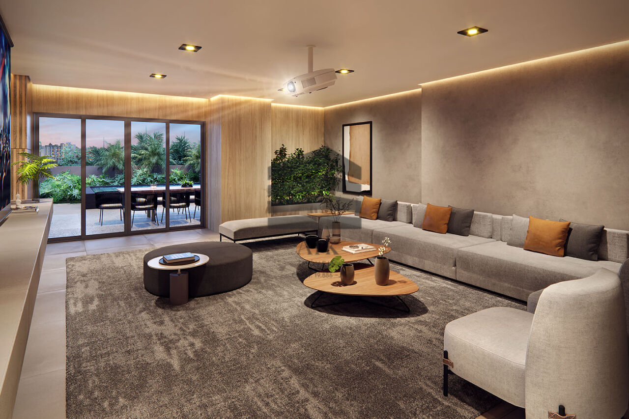 Apartamento com 78m² com 2 quartos, sendo duas suítes, sala para dois ambientes com varanda gourmet integrada á cozinha, área de serviço, lavabo e 1 vaga de garagem.