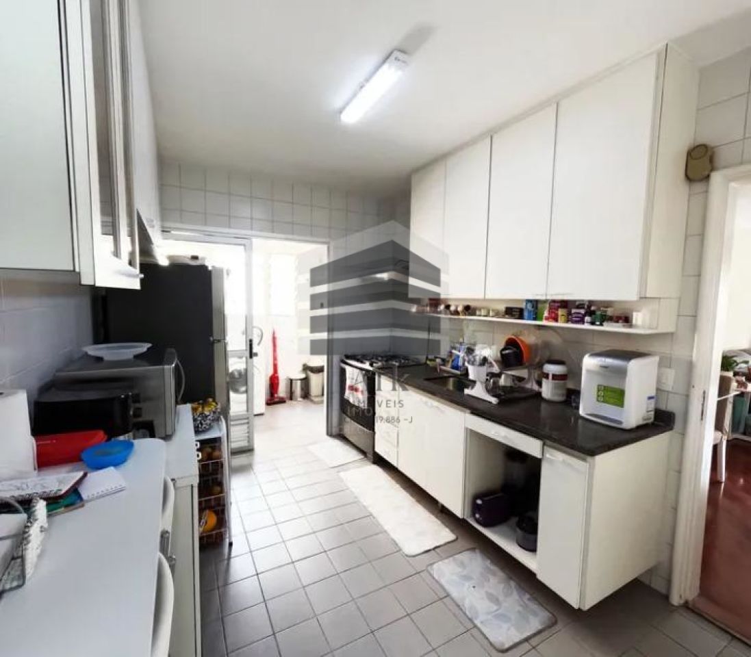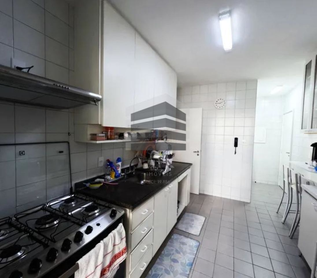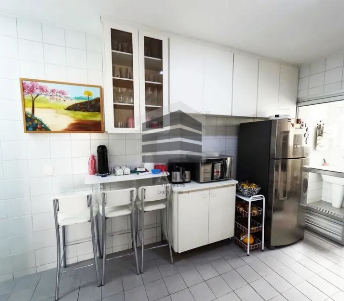 A cozinha é muito prática e espaçosa, além da entrada de serviço.