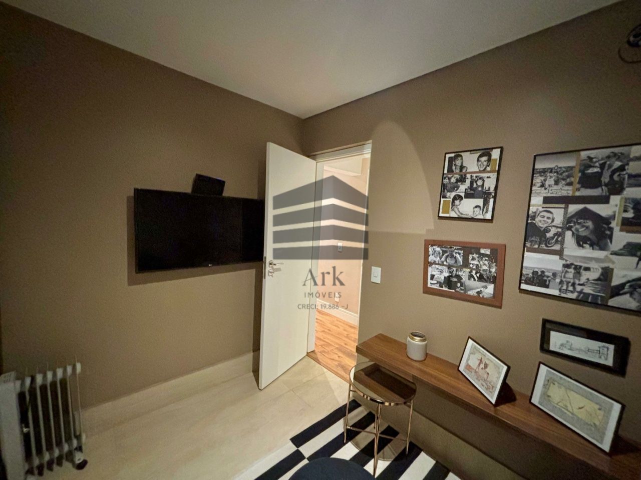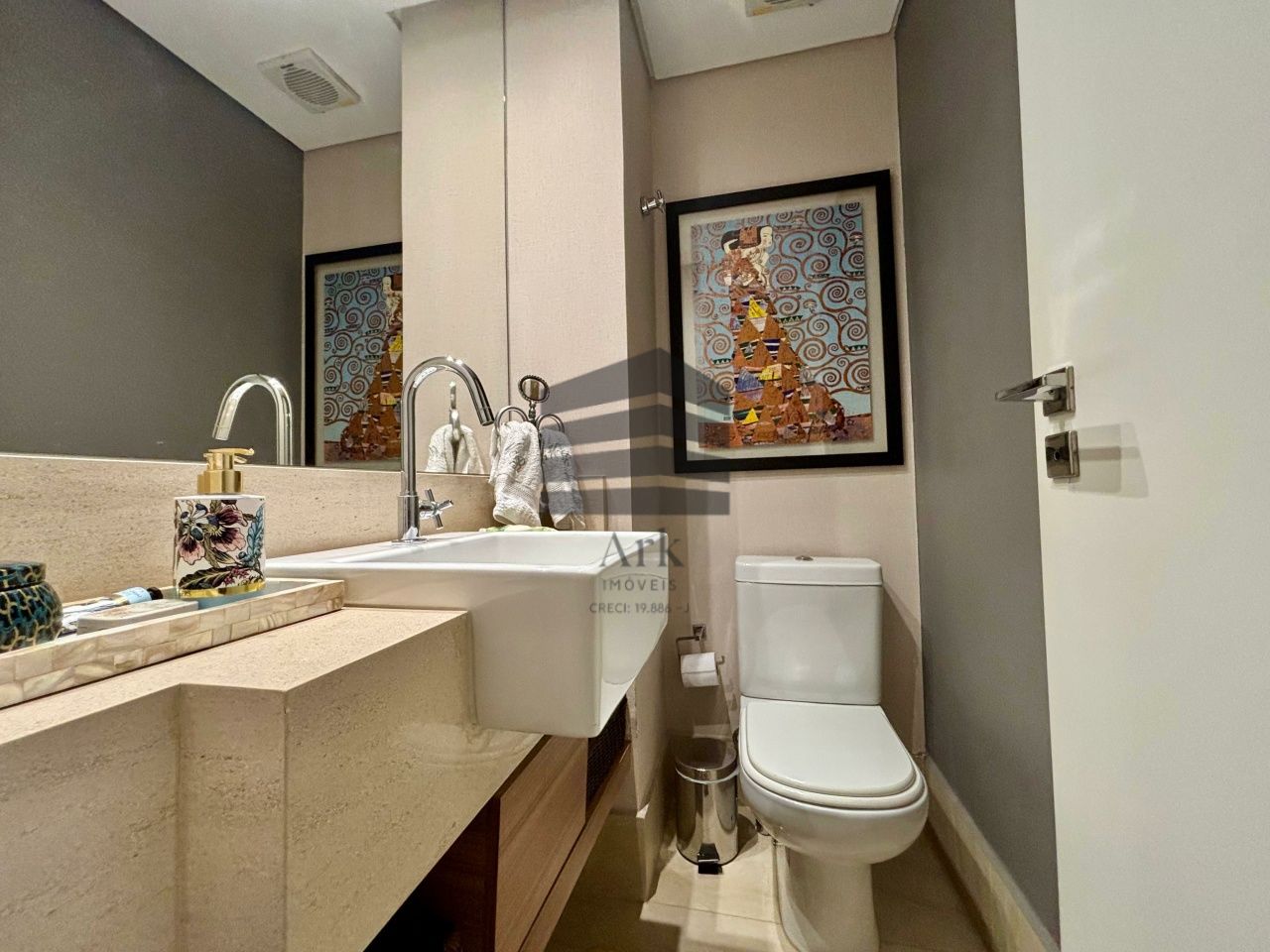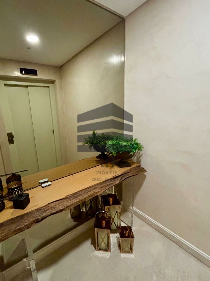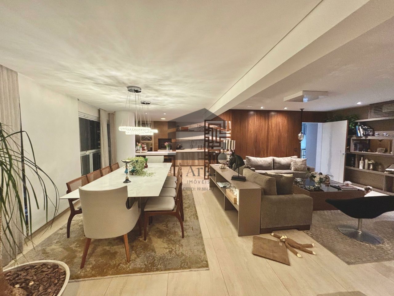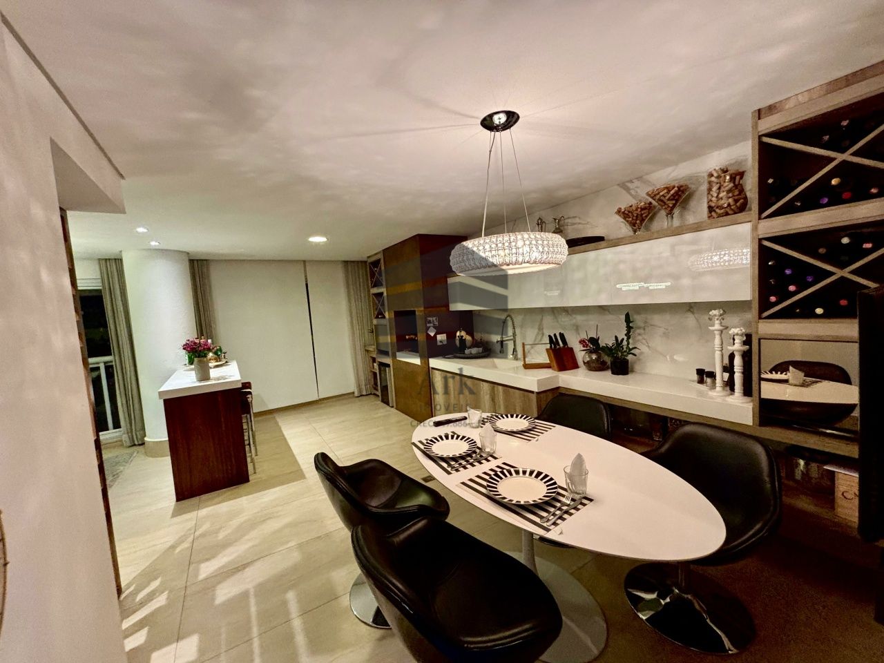 A sala ampla para dois ambientes é integrada à varanda gourmet, fechada com vidros retráteis, equipada com churrasqueira, ideal para receber amigos e familiares com conforto e privacidade. O ambiente é banhado por luz natural e proporciona uma vista aberta da região.