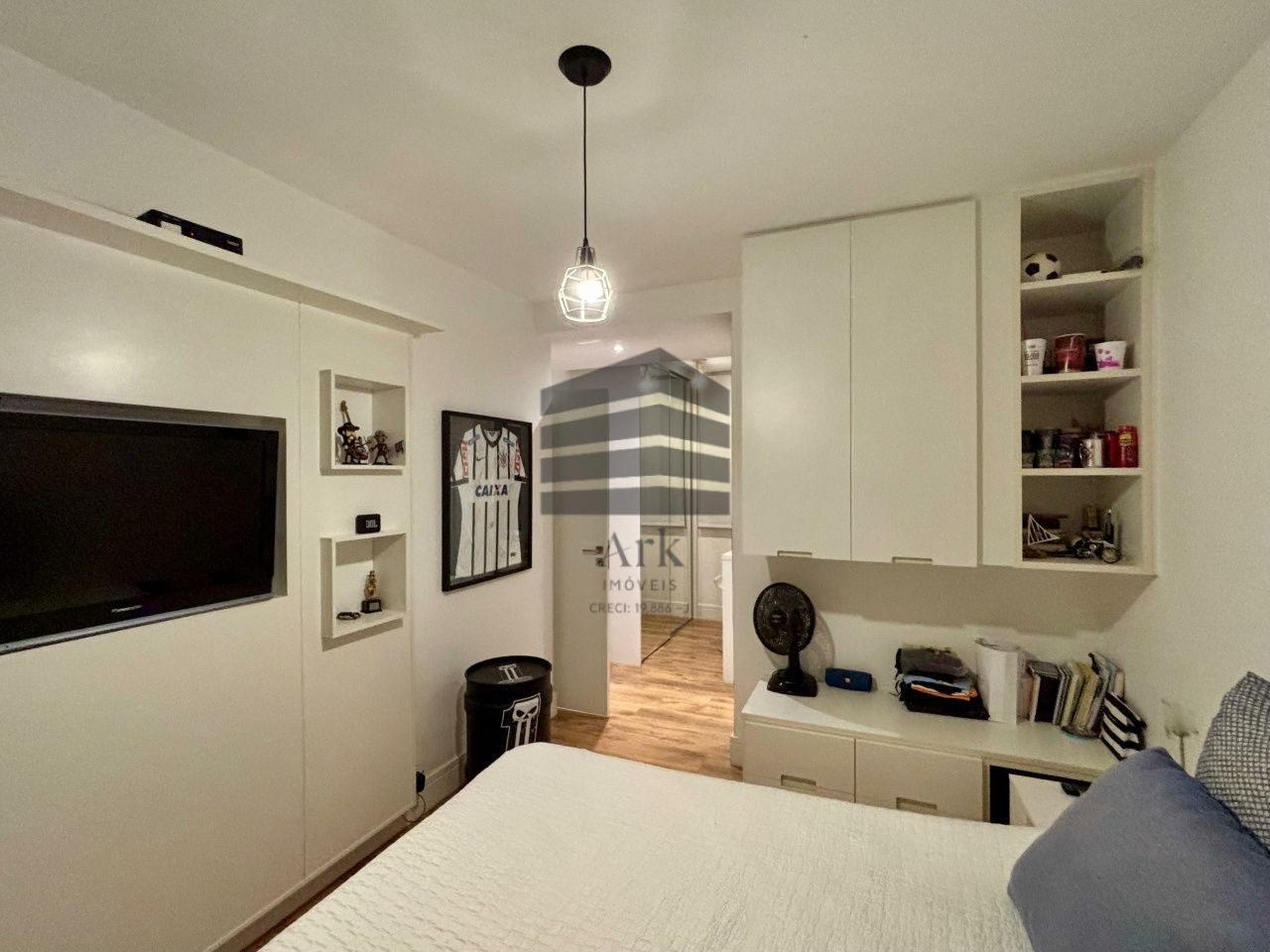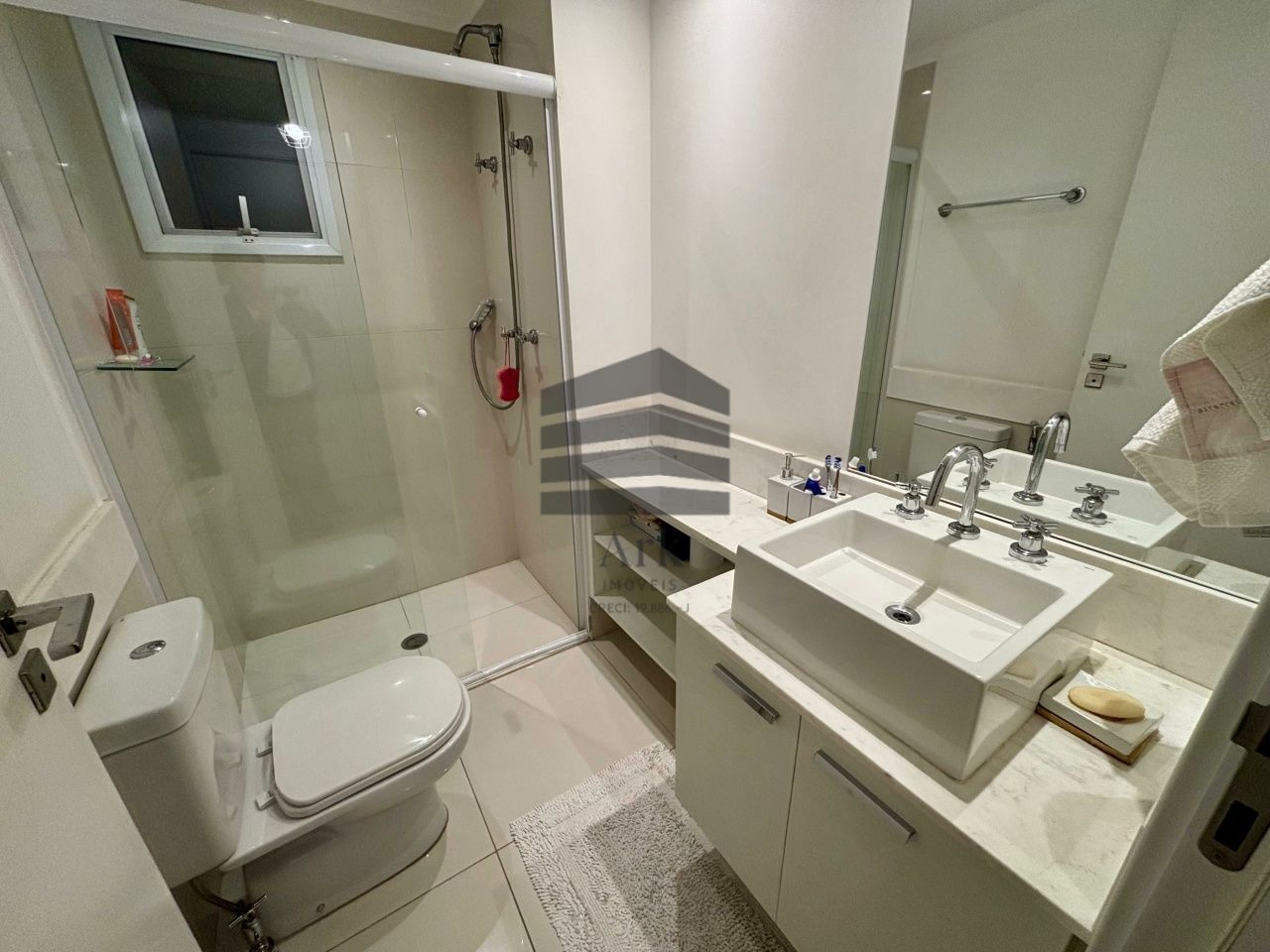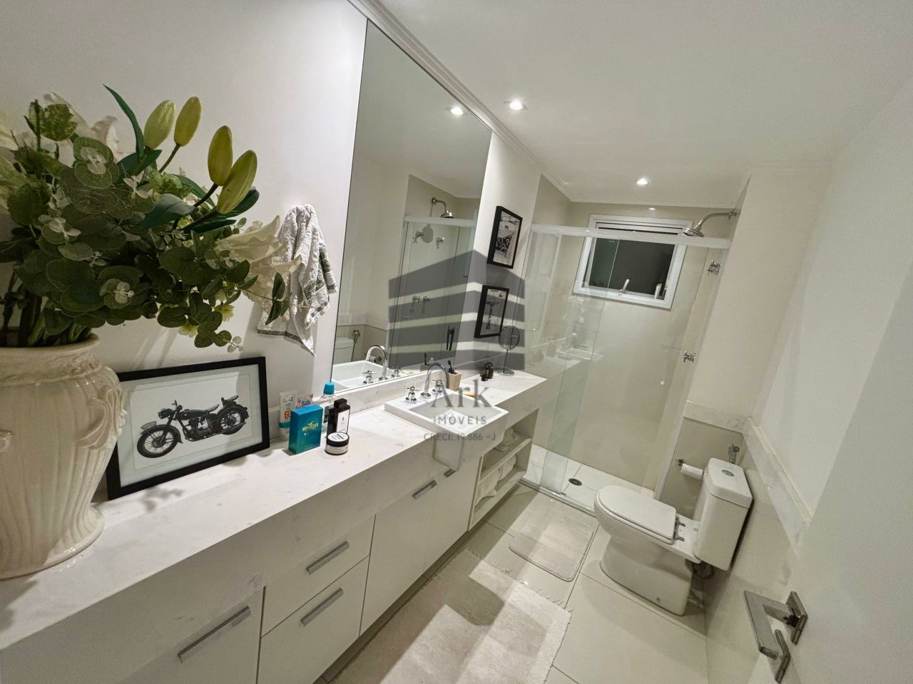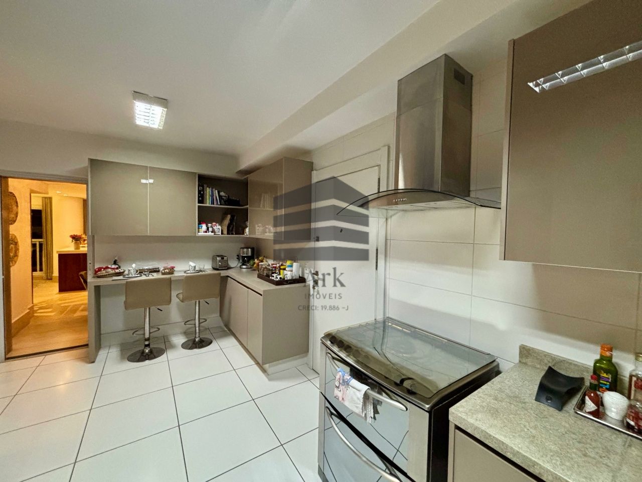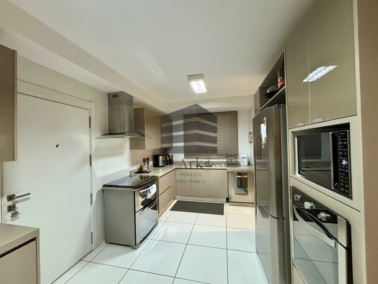 A cozinha é ampla e equipada, com ótimo espaço de bancada e armários planejados. A área de serviço é grande, ventilada, com WC e quarto de apoio, além de despensa.