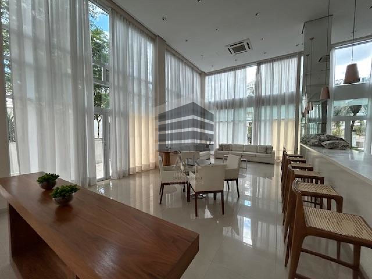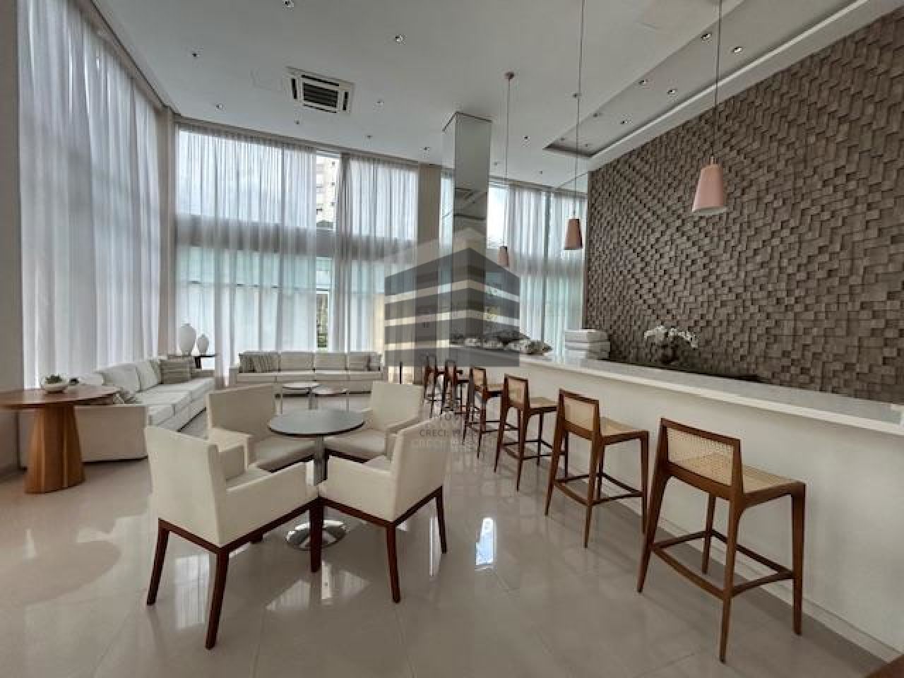 Lazer completo, com piscina, churrasqueira, lindo salão de festas, academia e quadra poliesportiva.