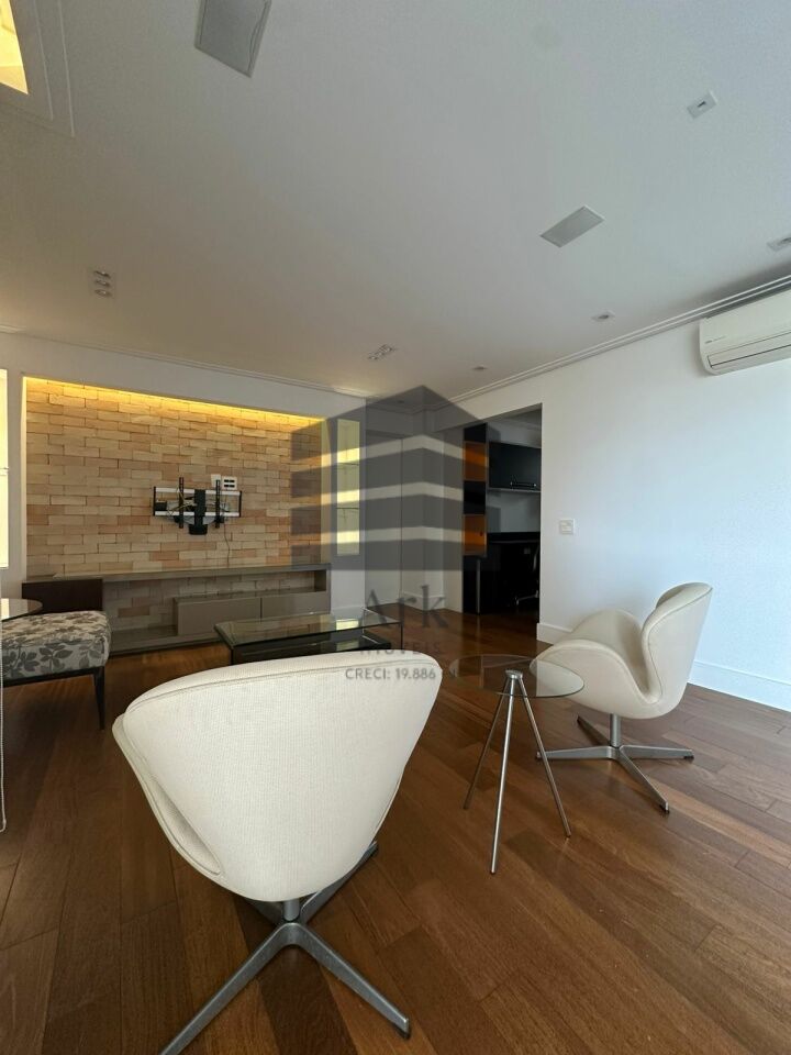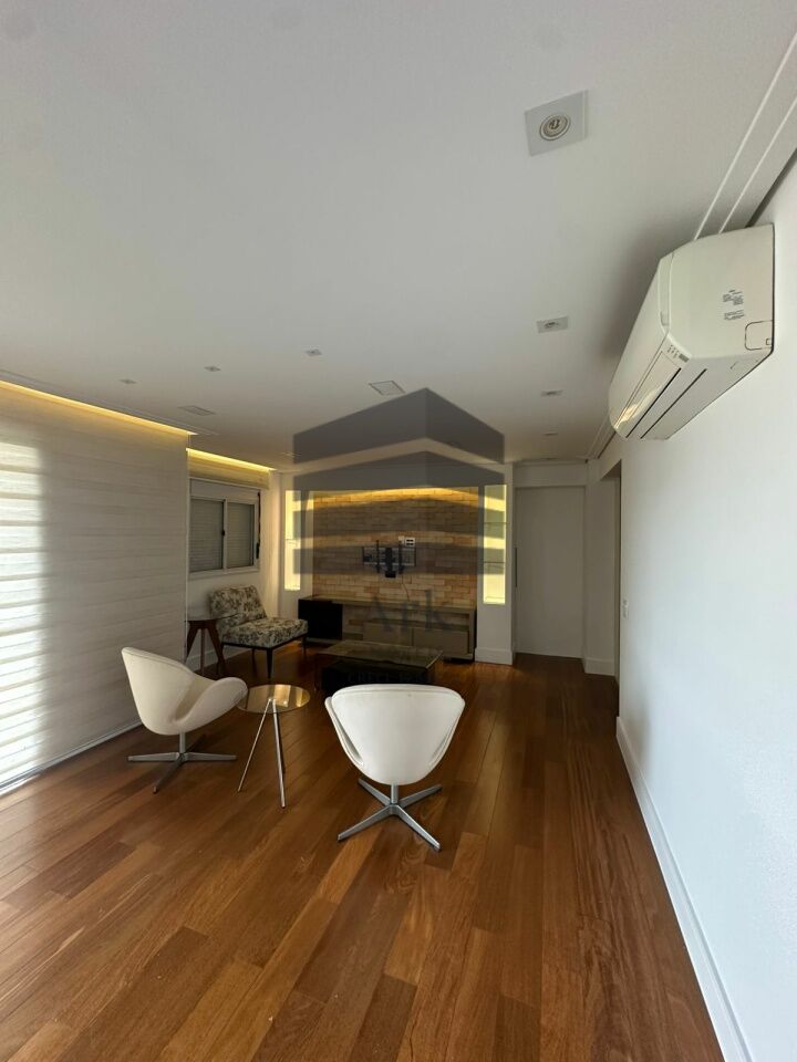 Ambientes climatizados com ar-condicionado na sala e nos dormitórios, além de móveis planejados que permanecem no imóvel, oferecendo praticidade e elegância.