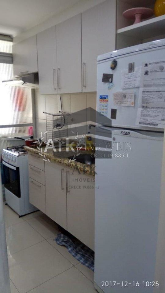Cozinha espaçosa e com armários, área de serviço e dois banheiros. Não possui suíte.