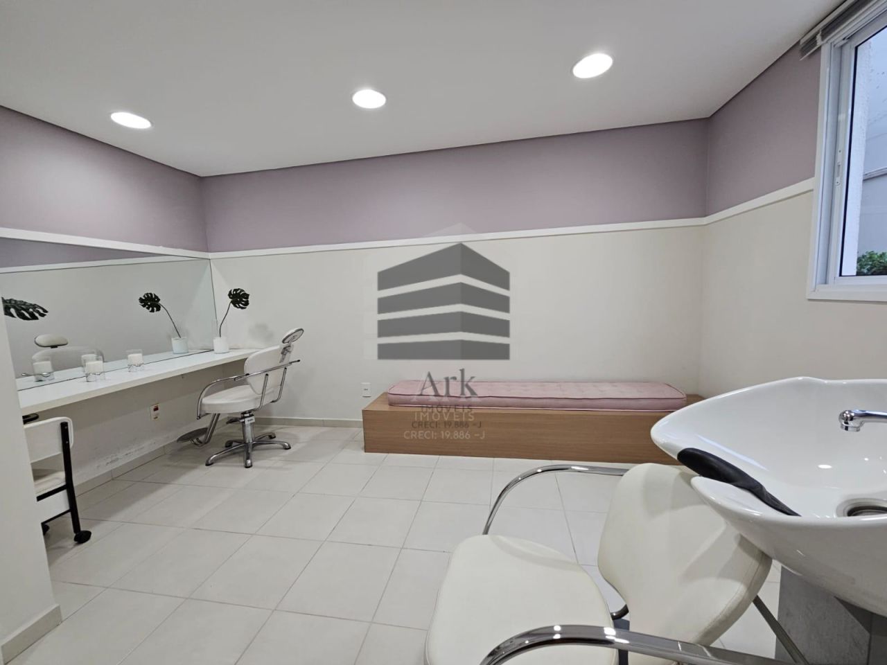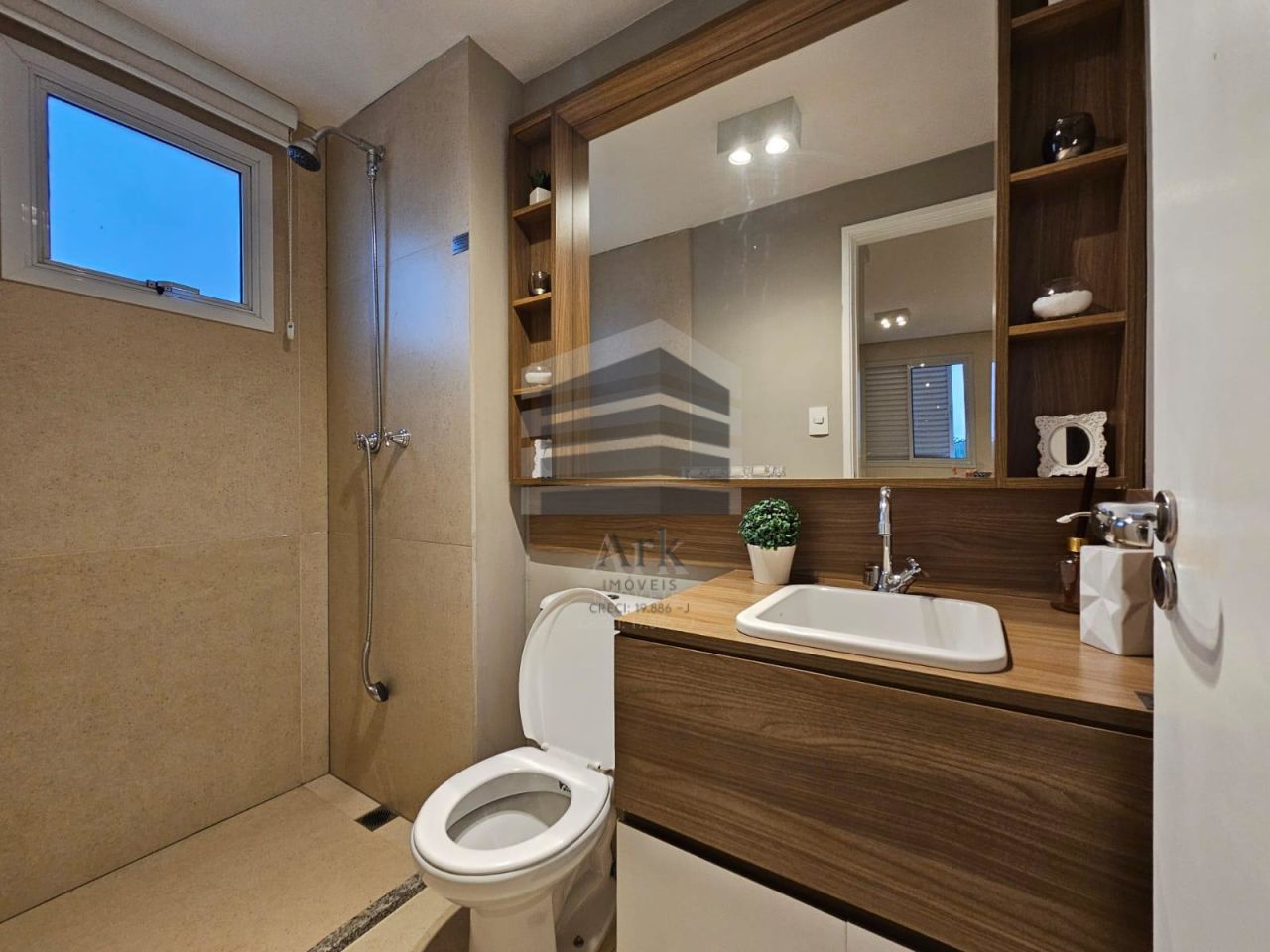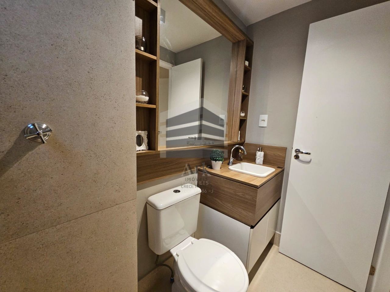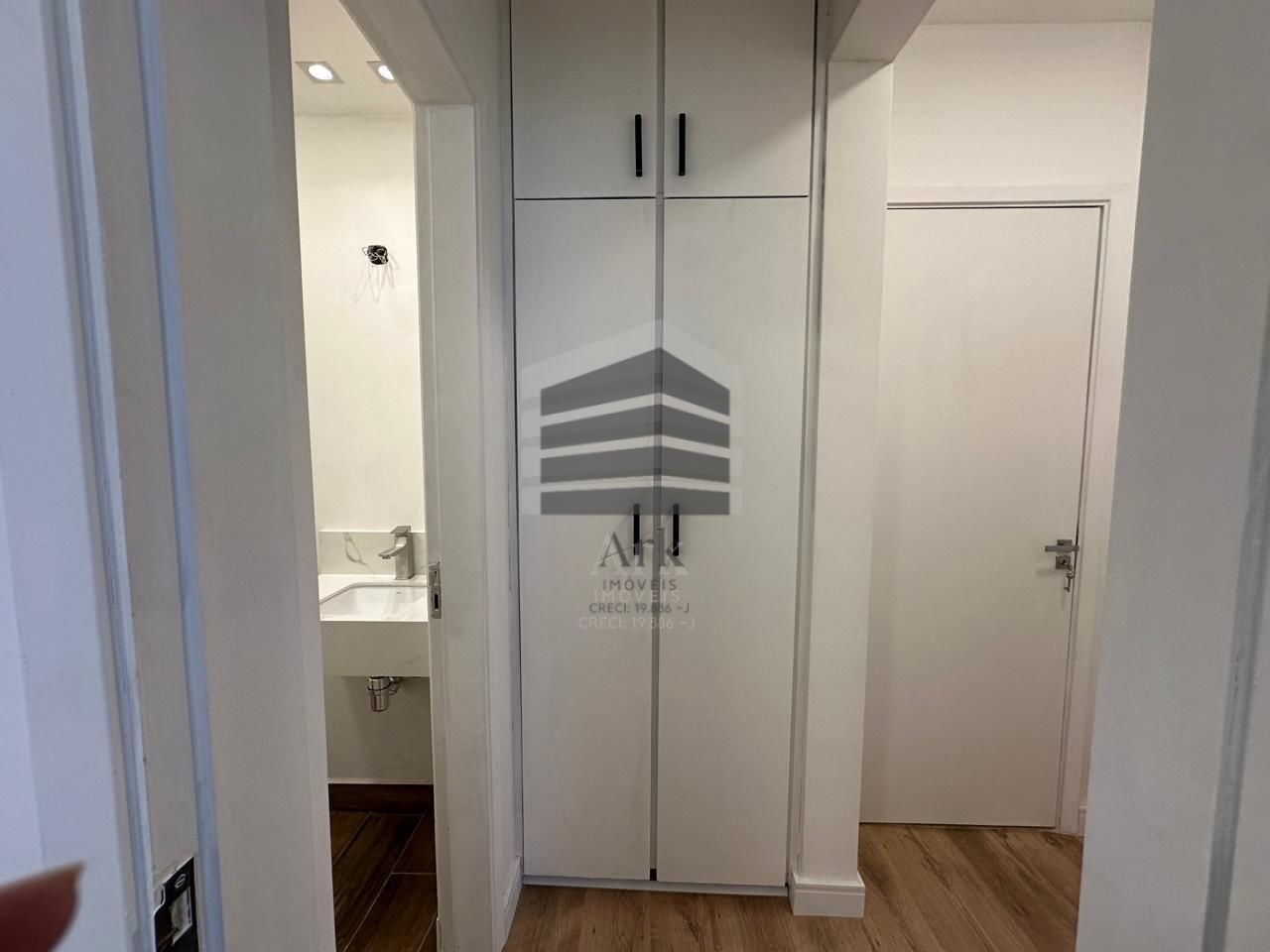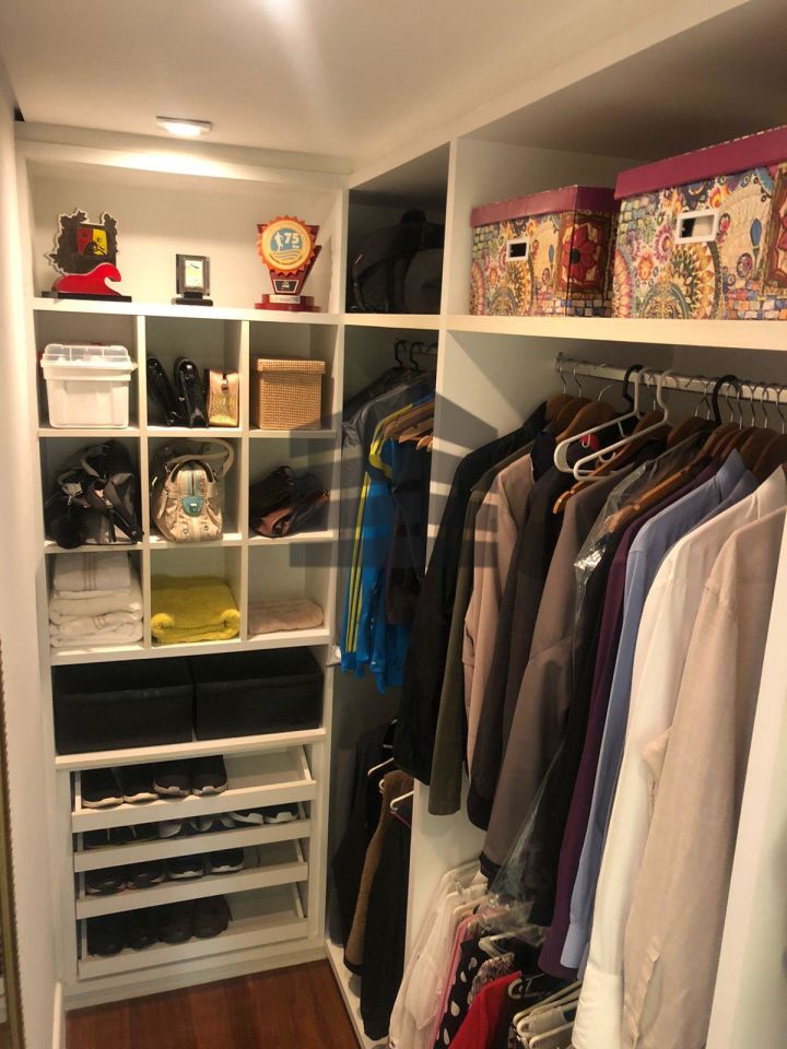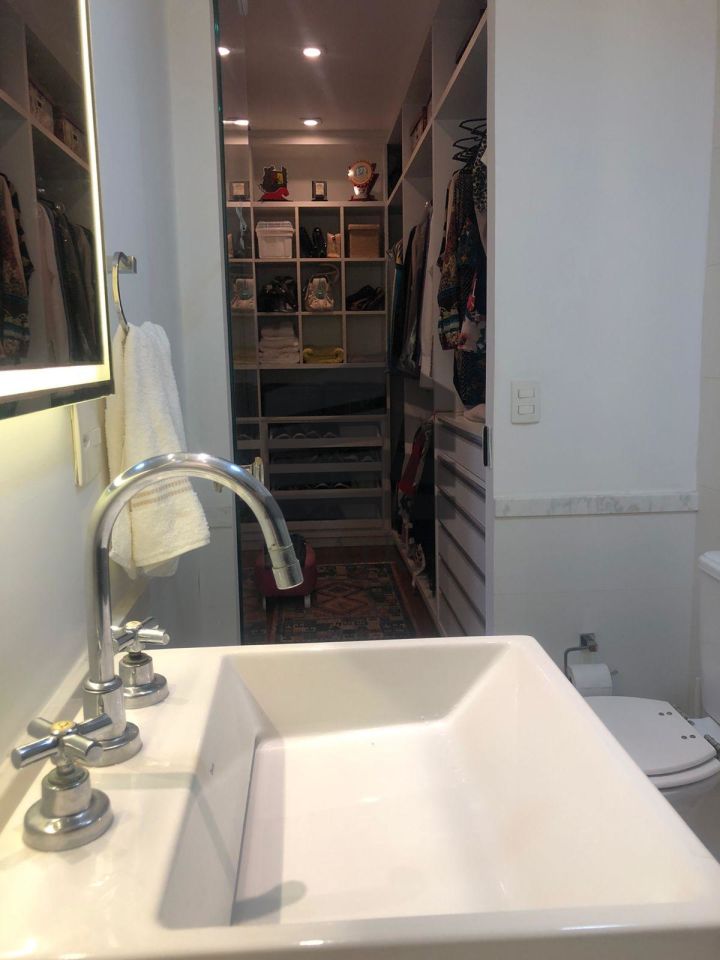 Espaços amplos e diversos armários planejados, além de um lavabo.