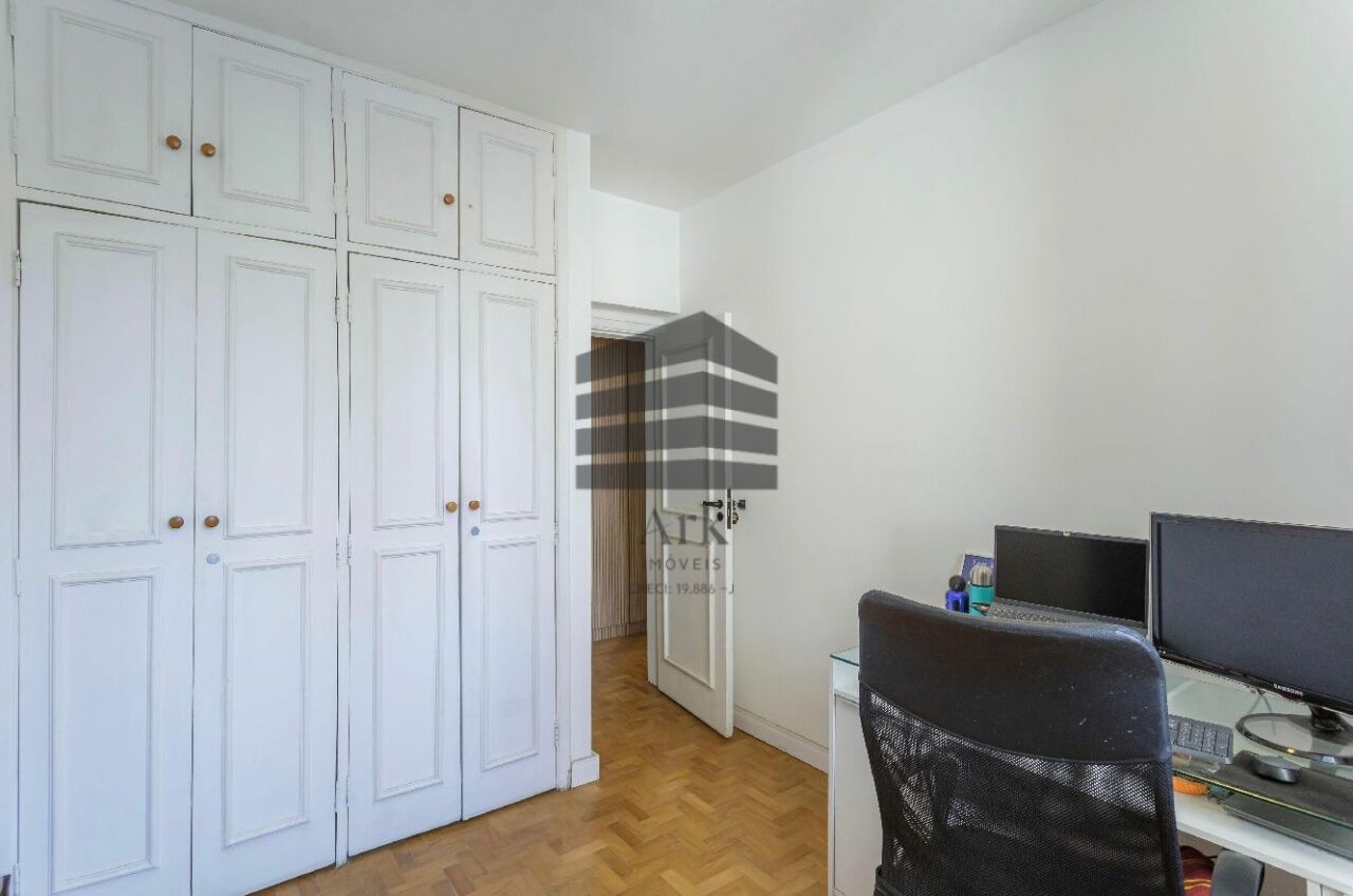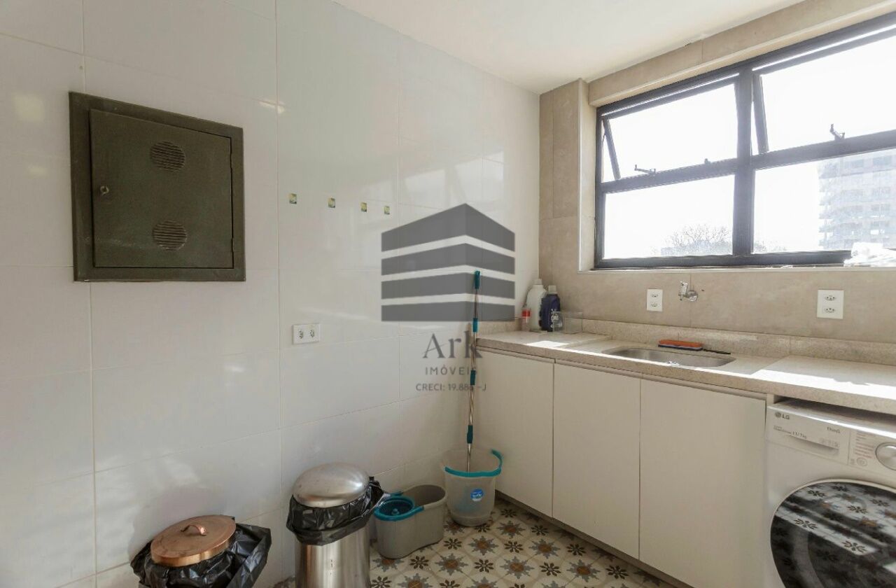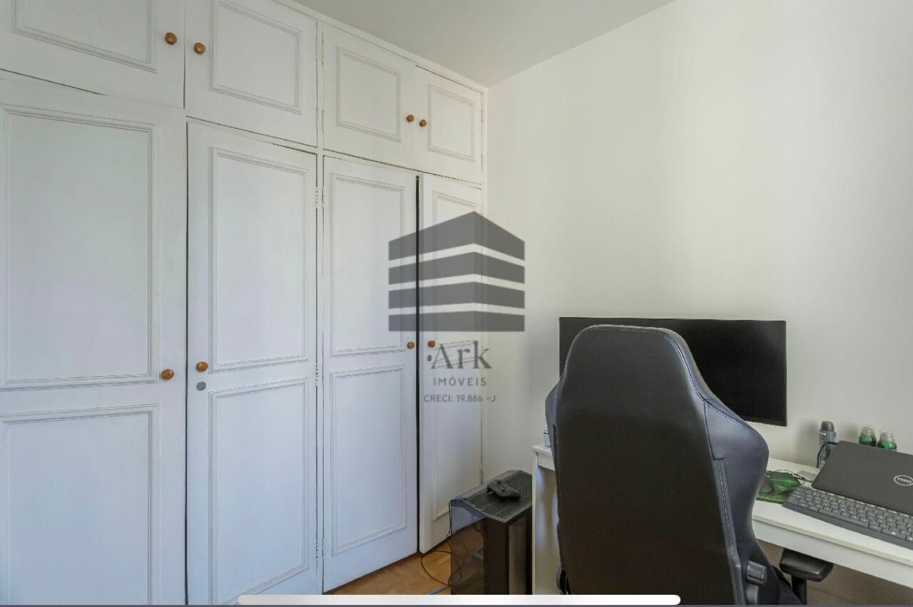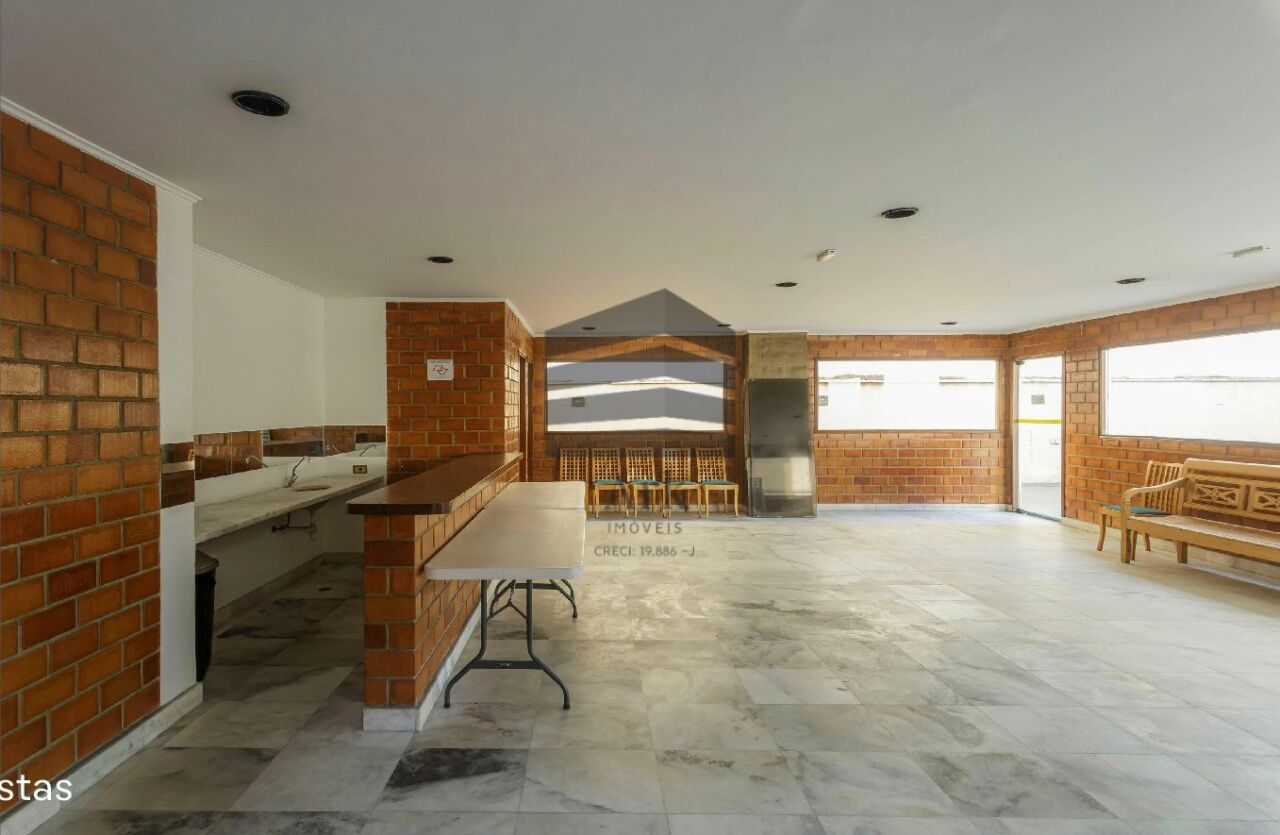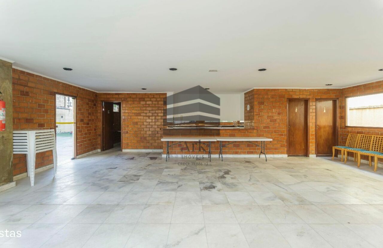 O apartamento tem 3 quartos, sendo 1 suíte, 1 banheiro social, sala de estar e jantar, cozinha em conceito aberto com a sala, dependência de empregada com banheiro (usado atualmente como escritório.