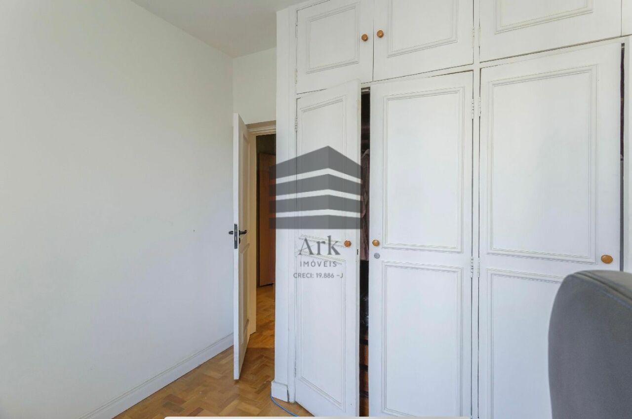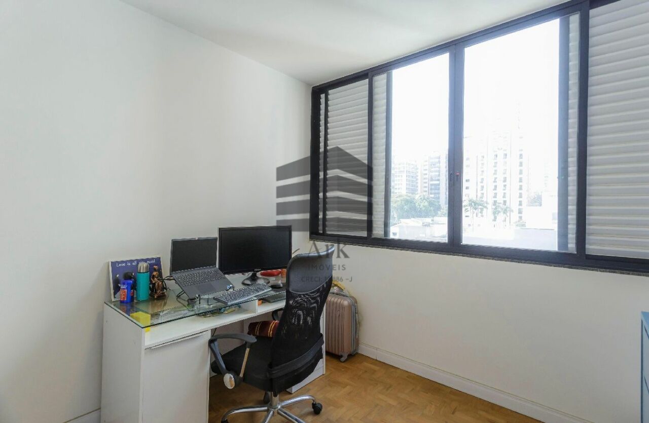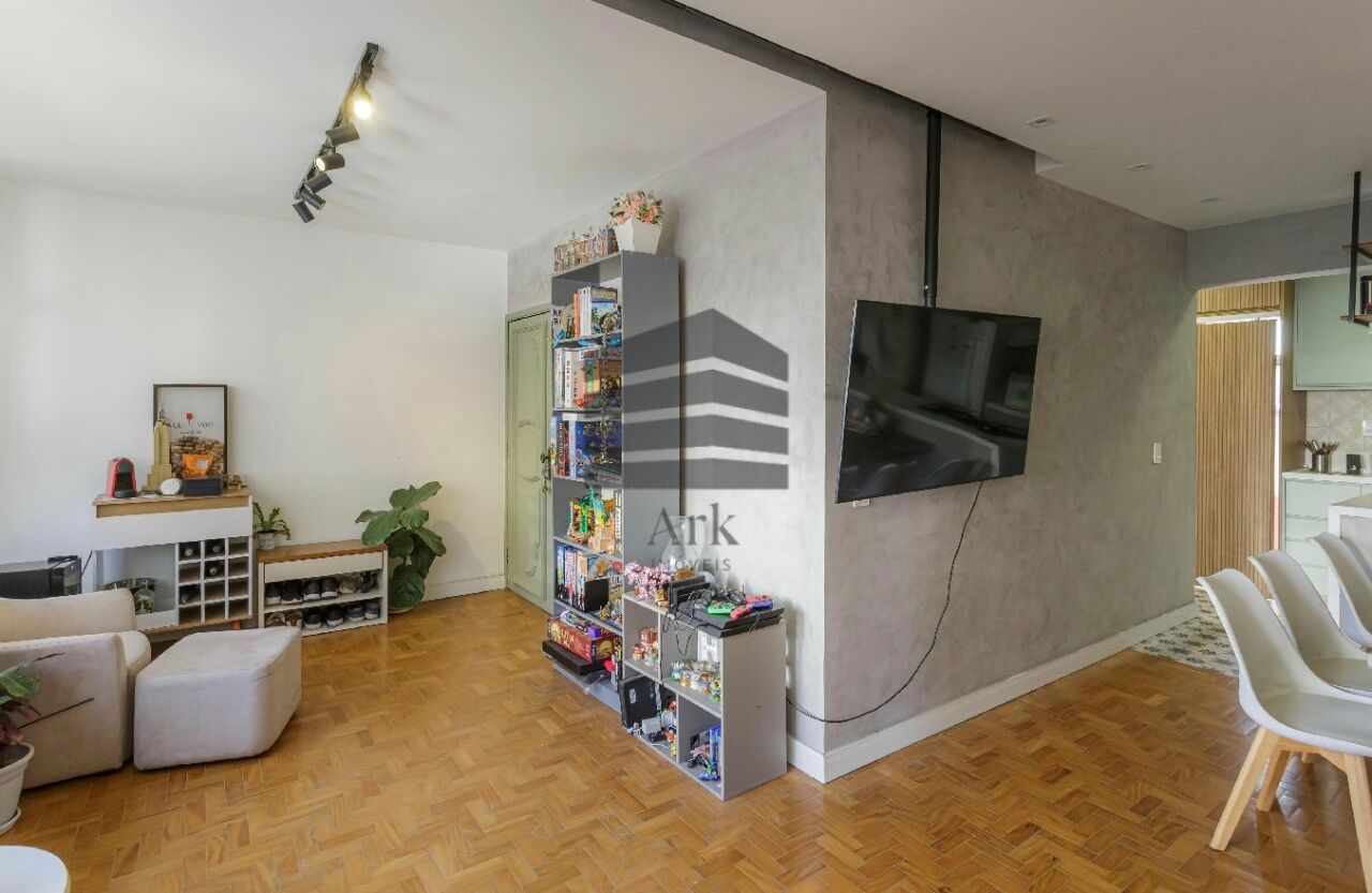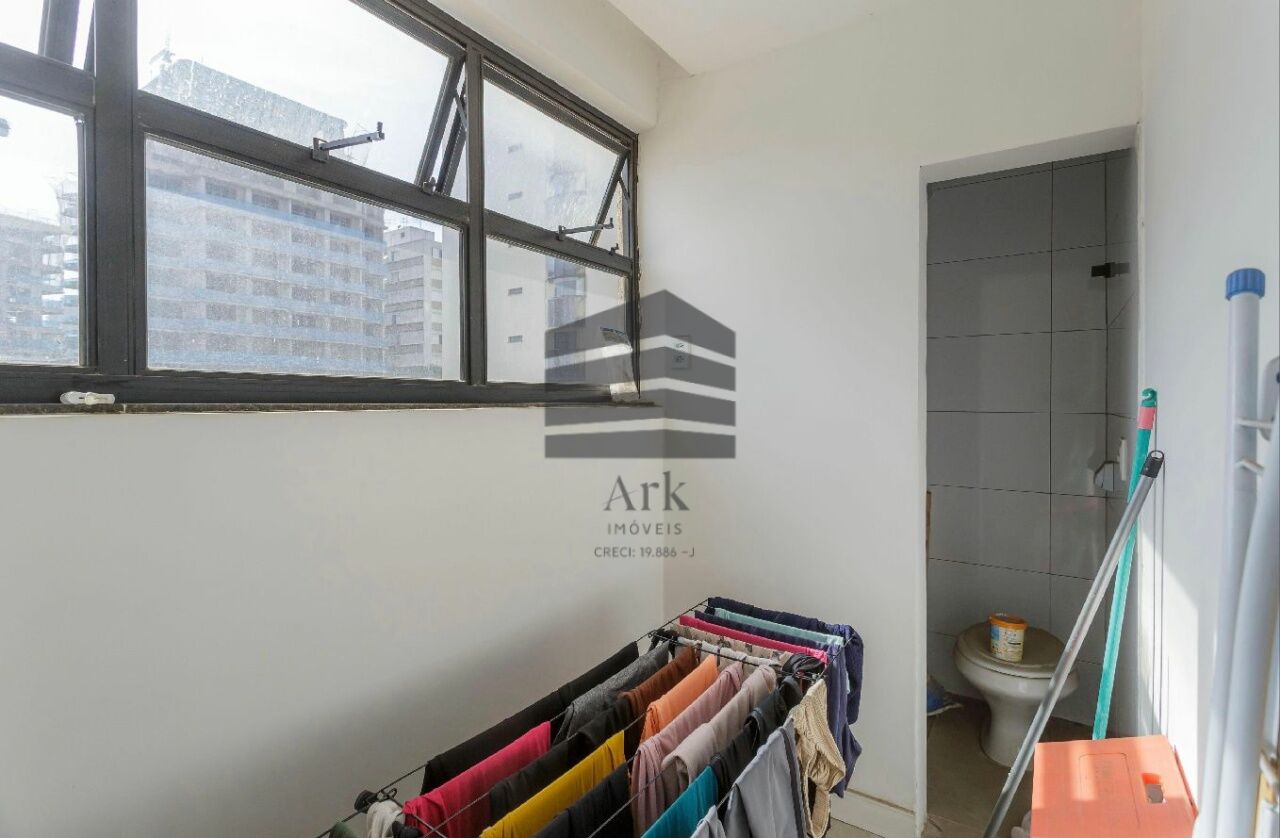 O apartamento tem 3 quartos, sendo 1 suíte, 1 banheiro social, sala de estar e jantar, cozinha em conceito aberto com a sala, dependência de empregada com banheiro (usado atualmente como escritório.