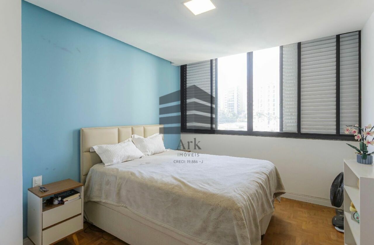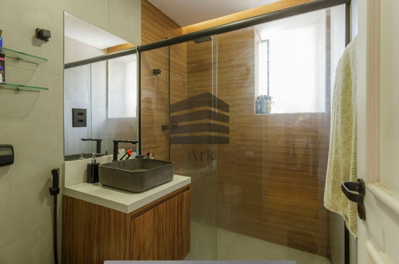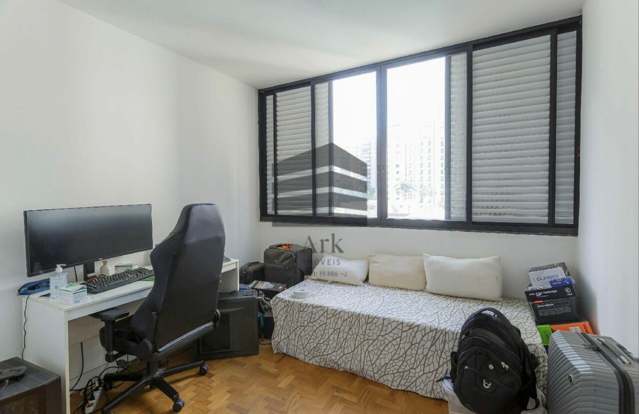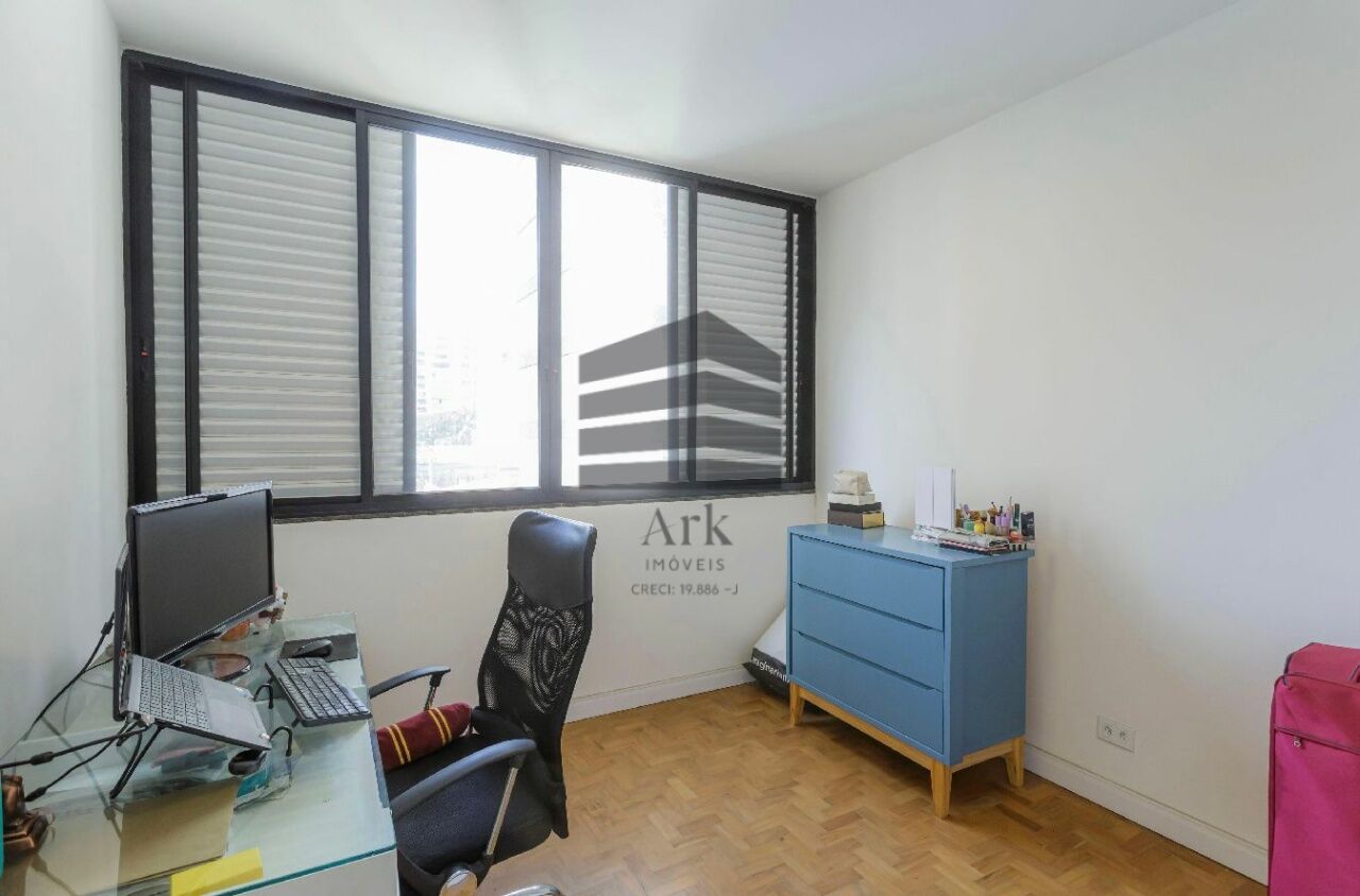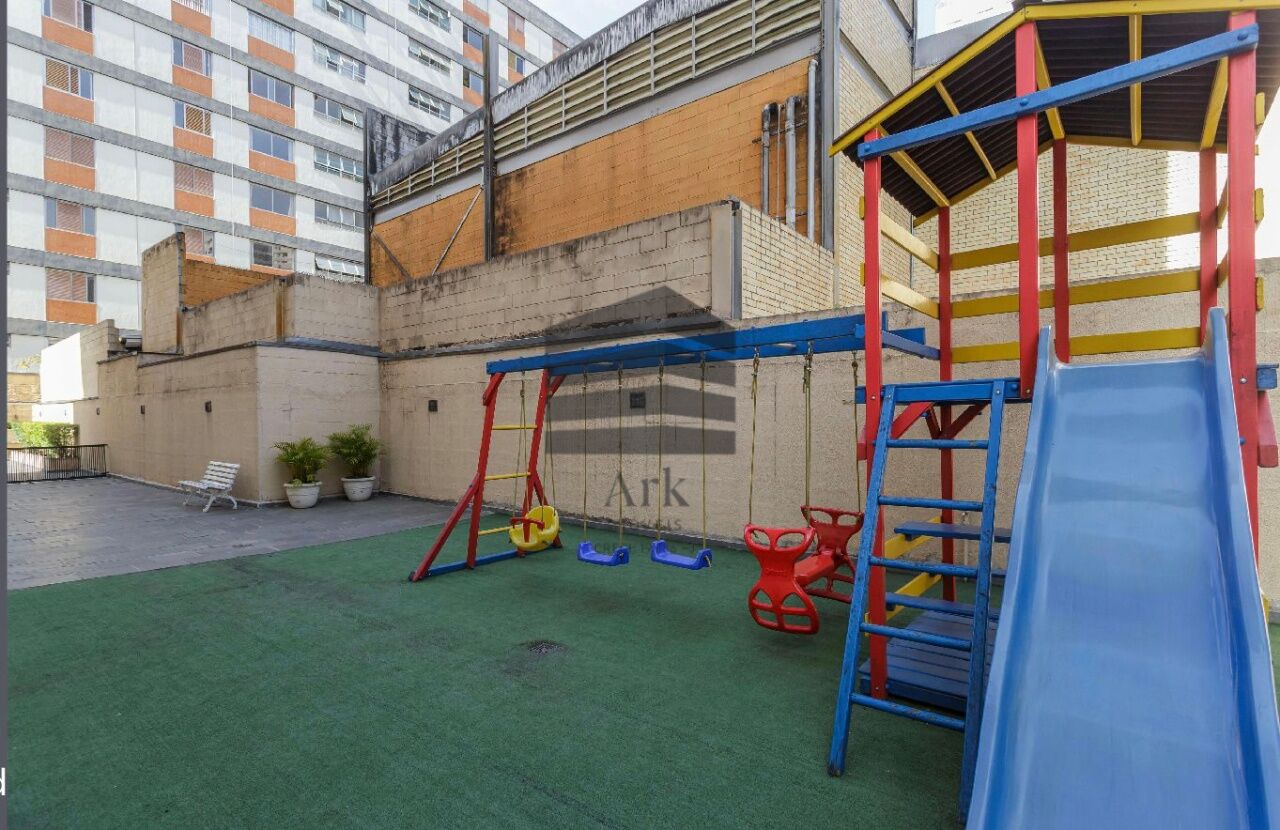 O apartamento tem 3 quartos, sendo 1 suíte, 1 banheiro social, sala de estar e jantar, cozinha em conceito aberto com a sala, dependência de empregada com banheiro (usado atualmente como escritório.