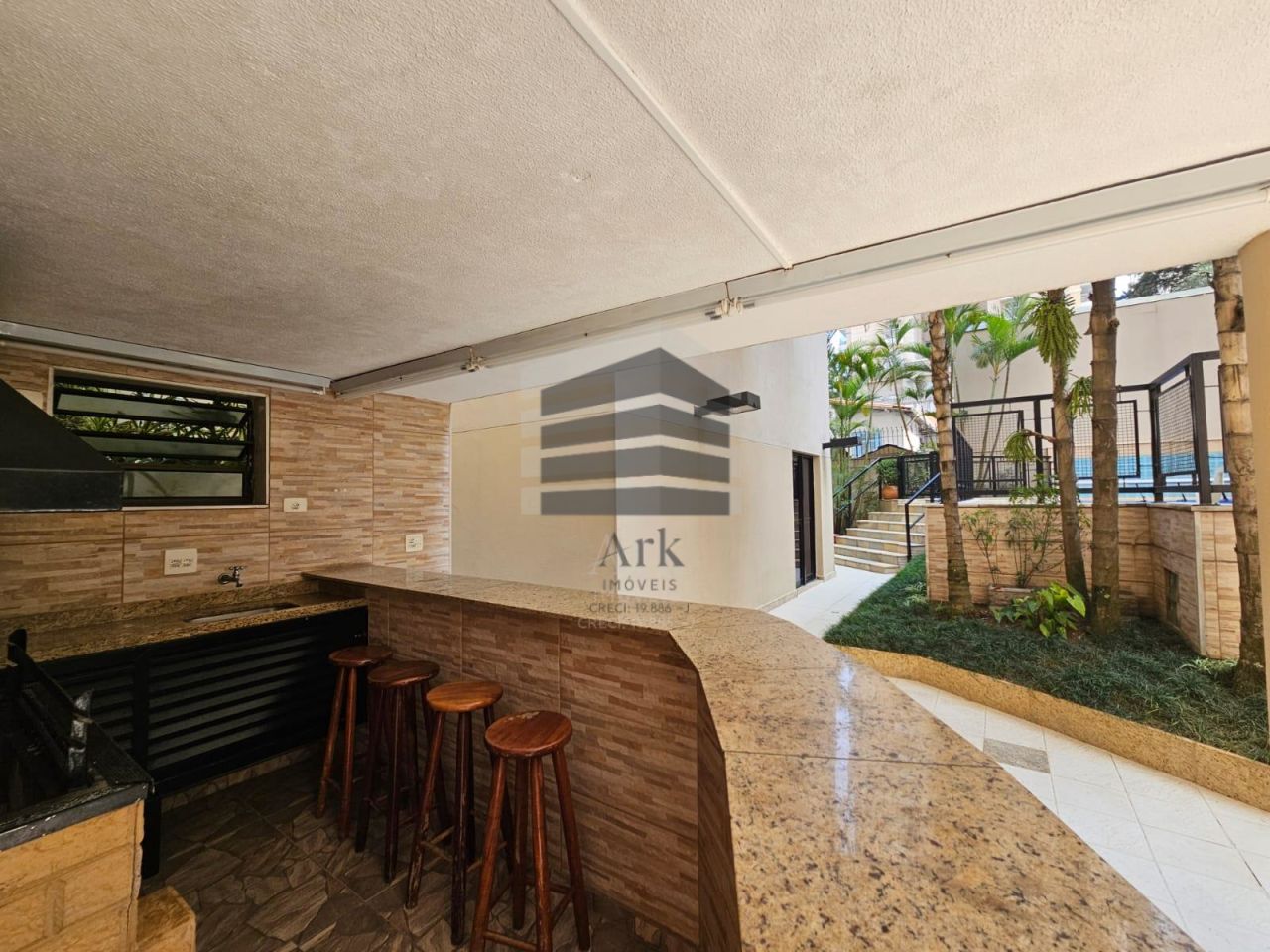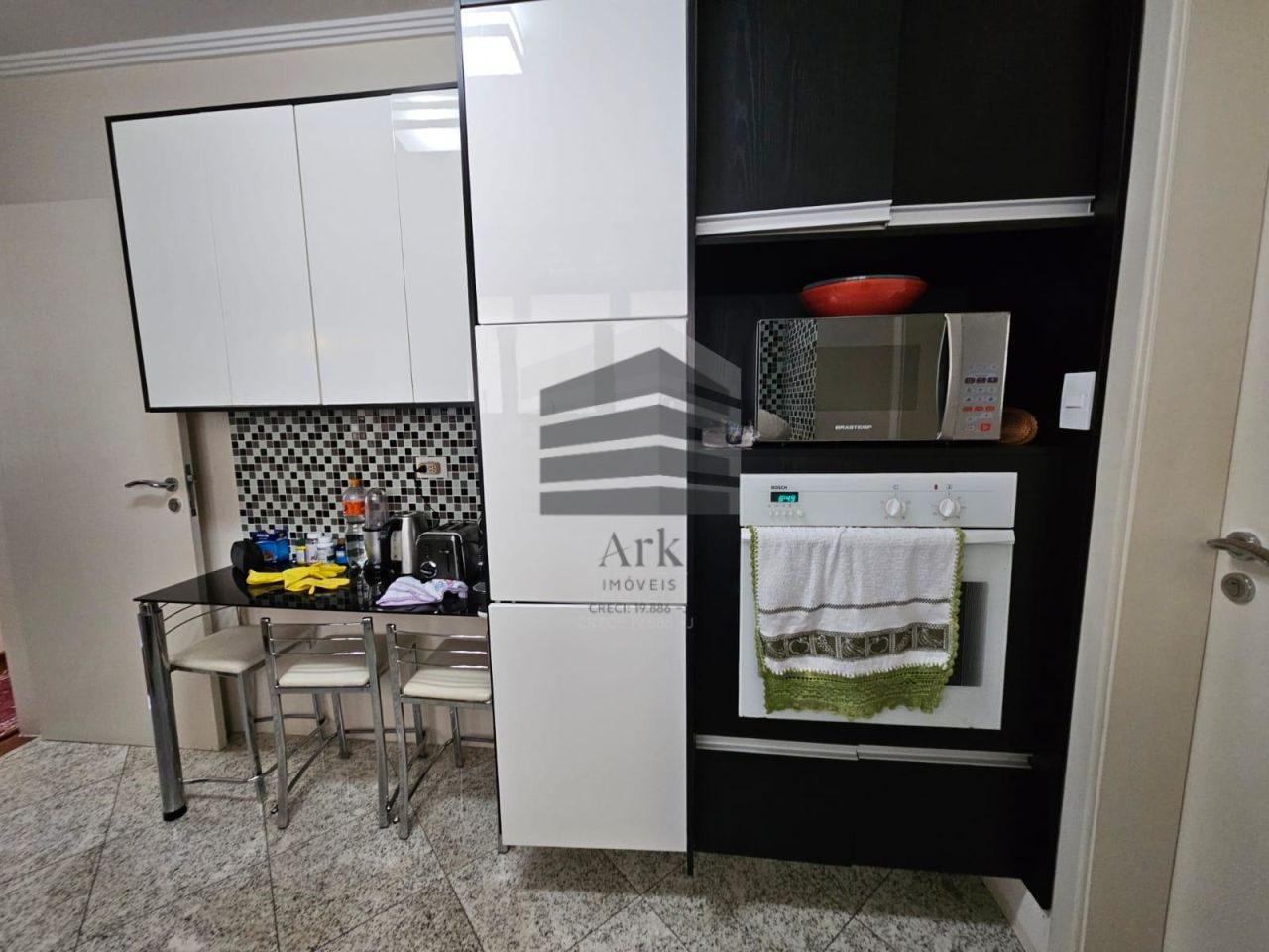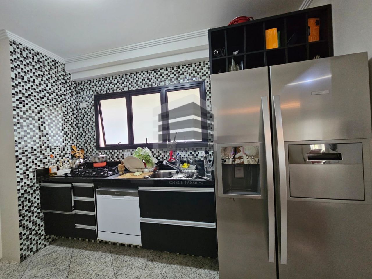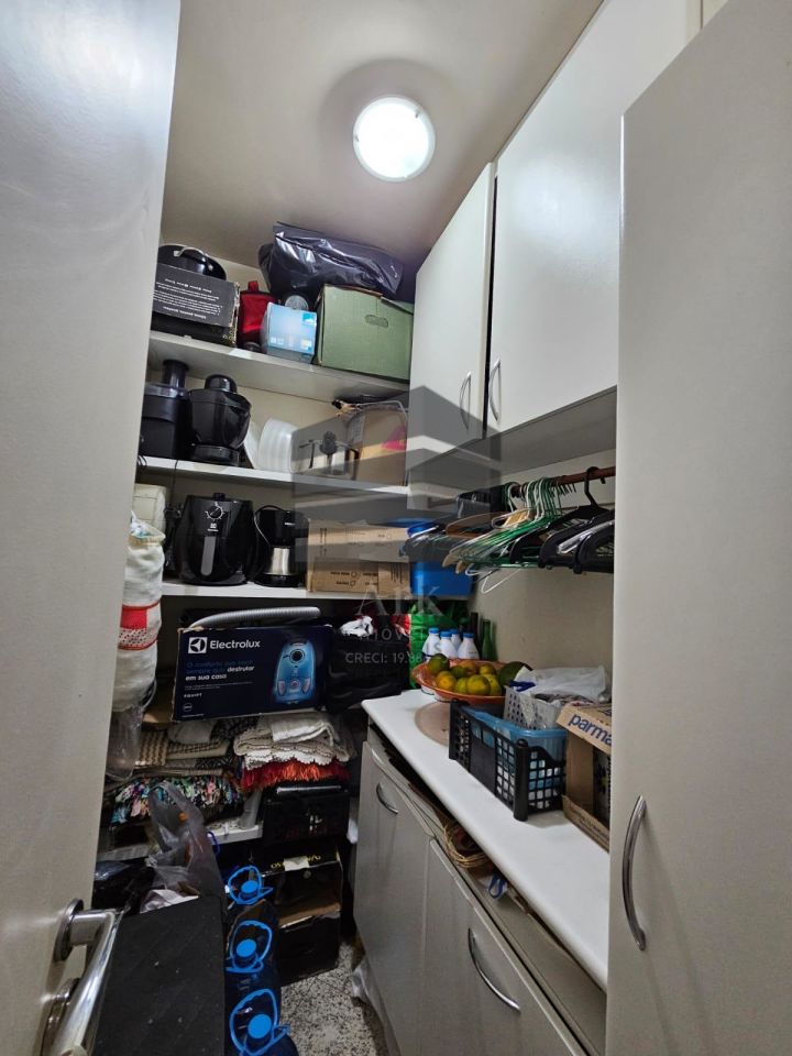 A cozinha tem ótimo tamanho, lindos armários embutidos. Ela é seguida de área de serviço, despensa e banheiro de serviço.