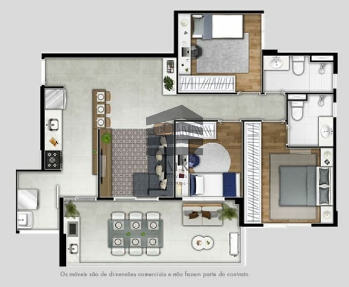 Apartamento com 3 dormitórios, sendo 1 suíte, com 84,4 m², entregue em 2023, apresenta um layout funciona transformar um dos quartos em uma sala adicional ou um home office. A varanda espaçosa é equipada com bancada, pia e churrasqueira elétrica, criando um espaço ideal para momentos de descontração com uma vista livre que inspira tranquilidade.