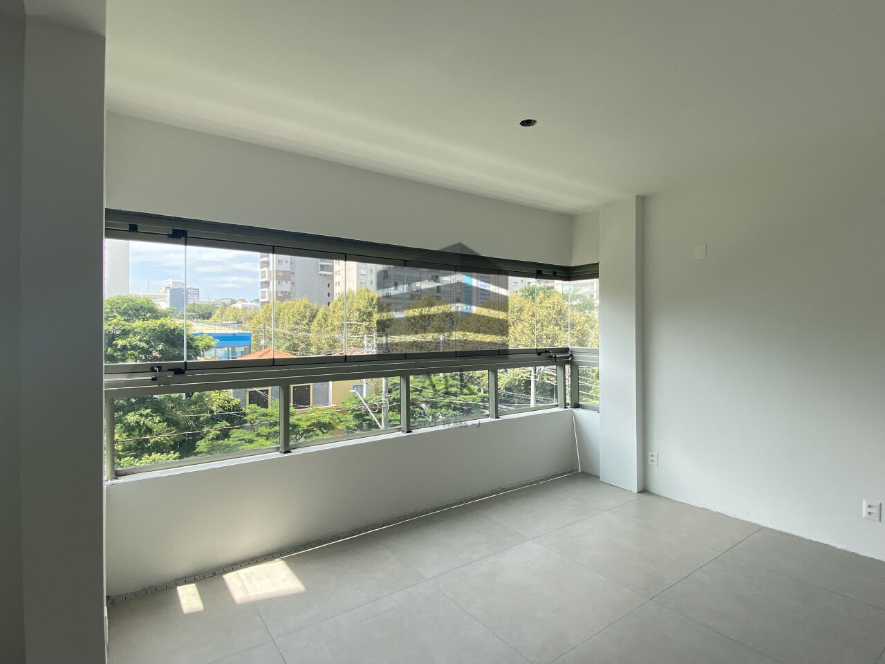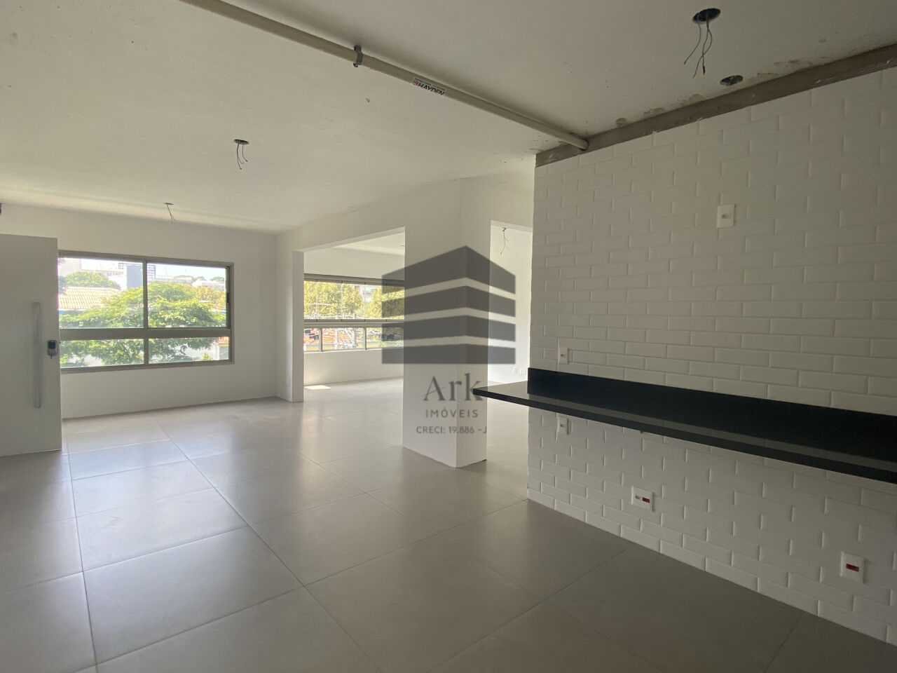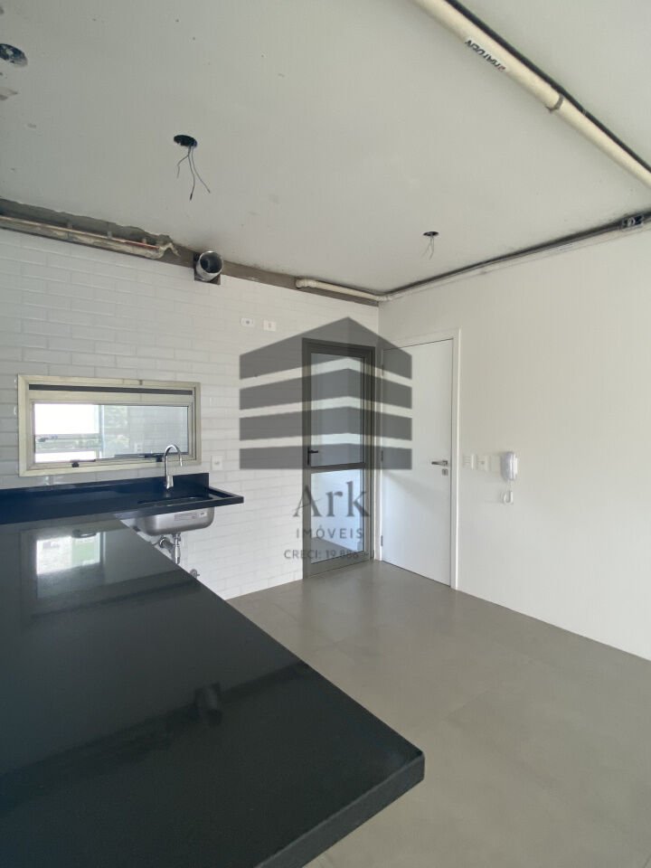 Tem uma sala ampla em conceito aberto com a cozinha. Nas fotos a varanda está integrada a sala, mas a varanda tem um ótimo tamanho.