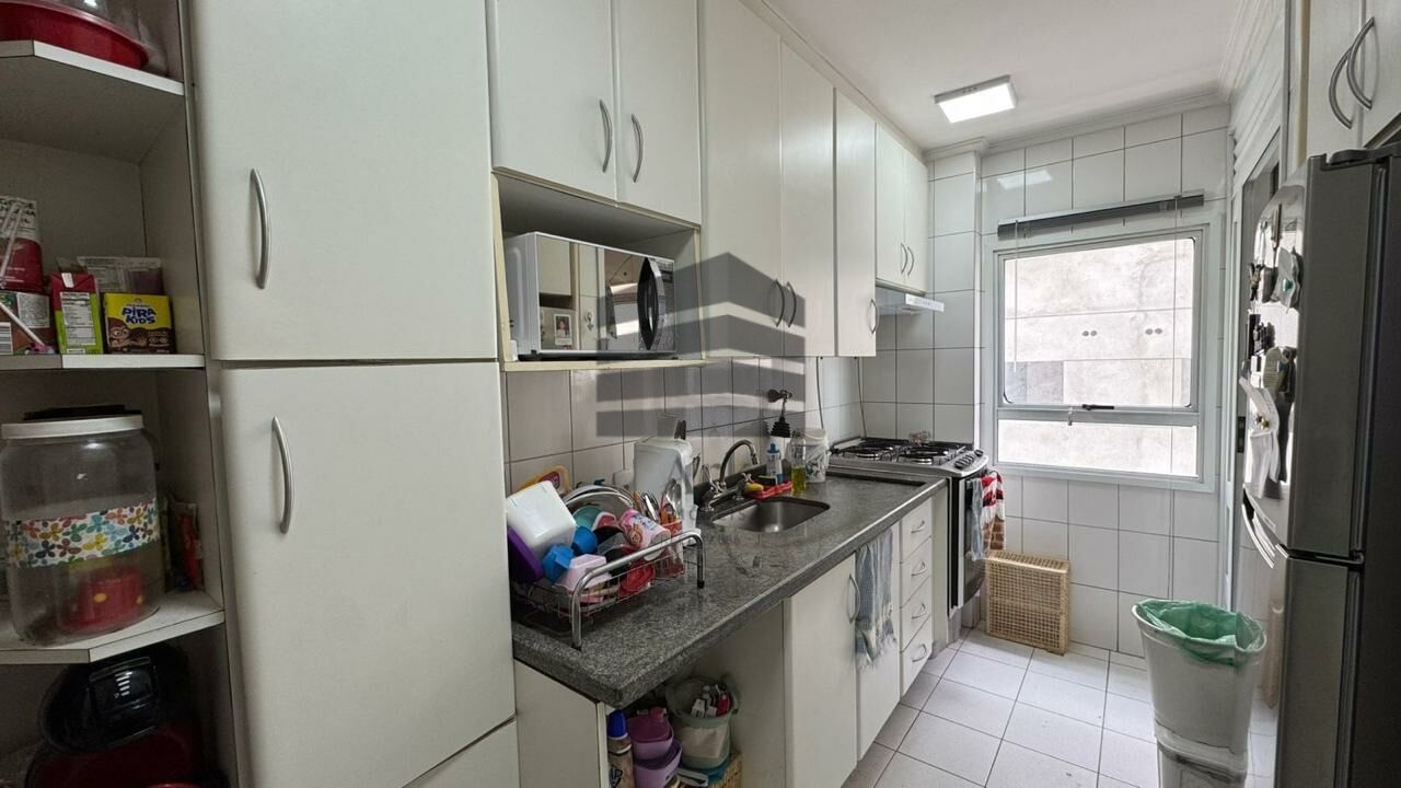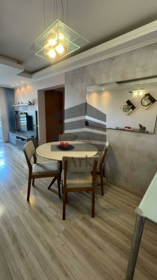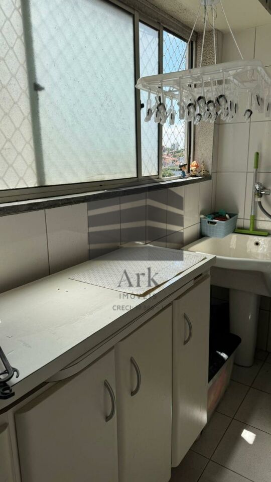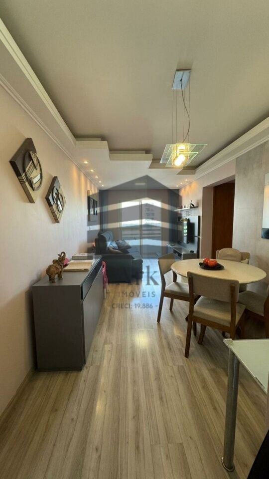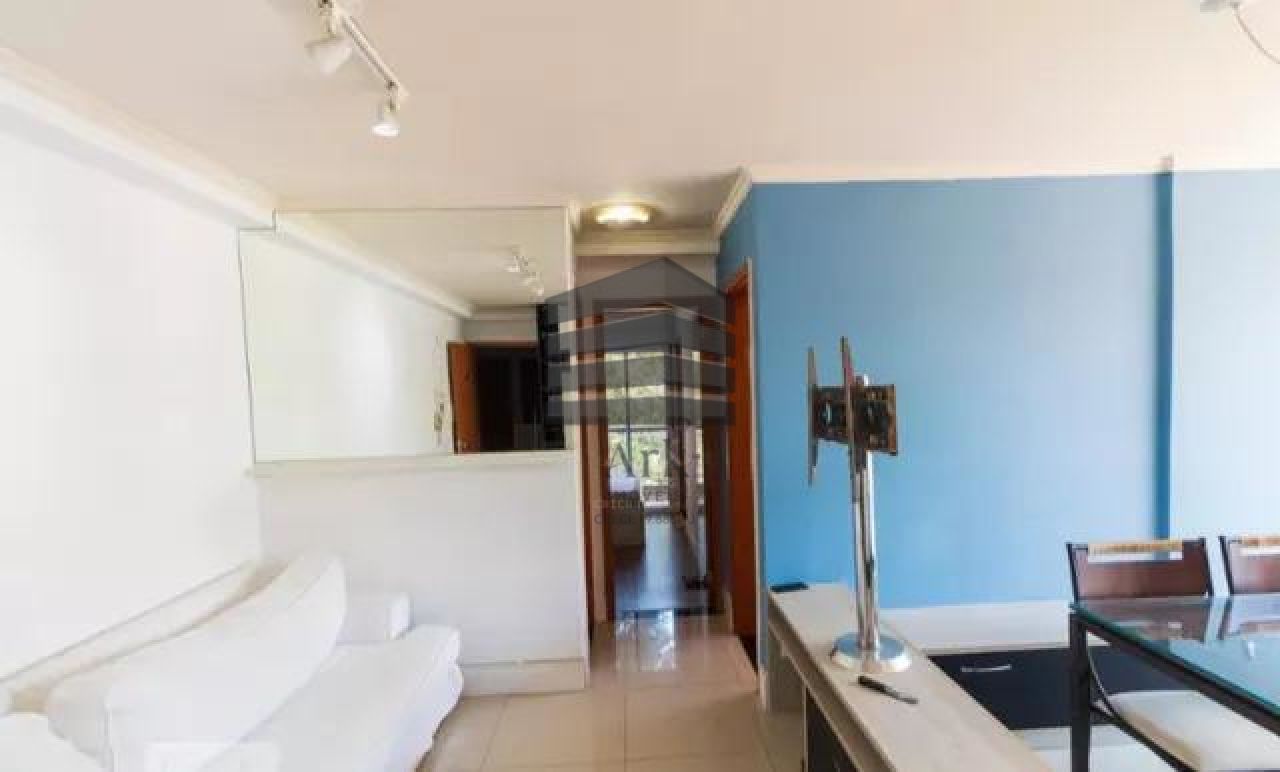O apartamento tem 56m², 2 quartos, sendo 1 suíte, sala, varanda com vista livre, 1 banheiro social, cozinha, área de serviço e 1 vaga de garagem.