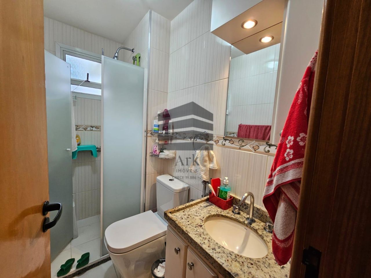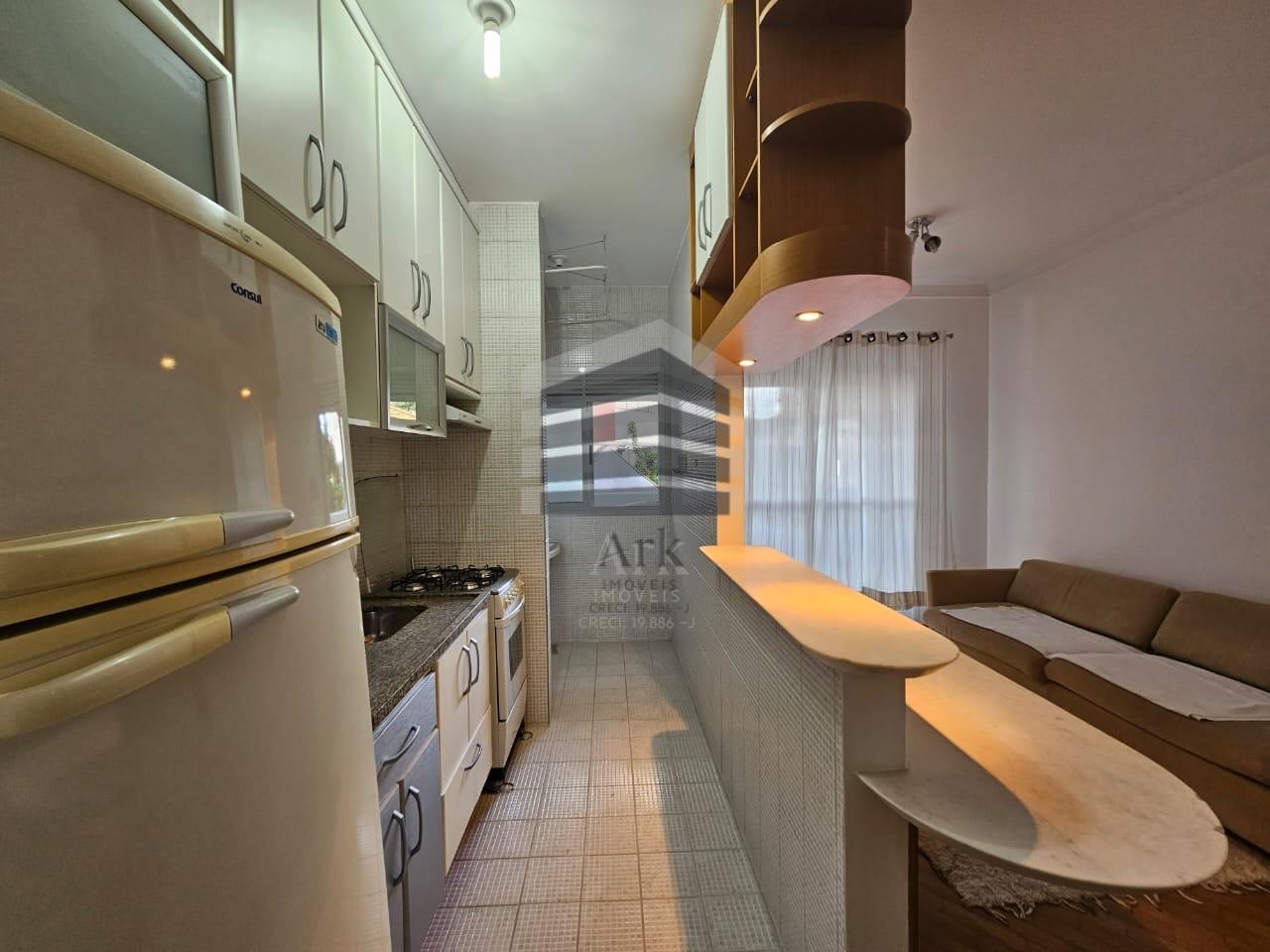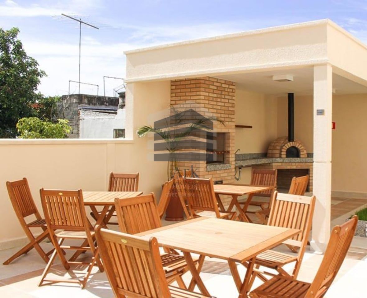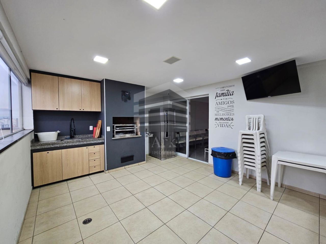 O apartamento tem 58,98m², 2 quartos, sendo uma suíte, 1 banheiro social, sala, cozinha integrada a sala, tem espaço para mesa de jantar ampla, varanda, área de serviço e 1 vaga de garagem.