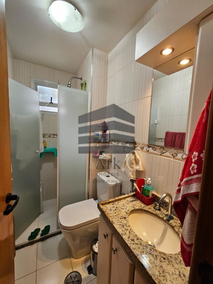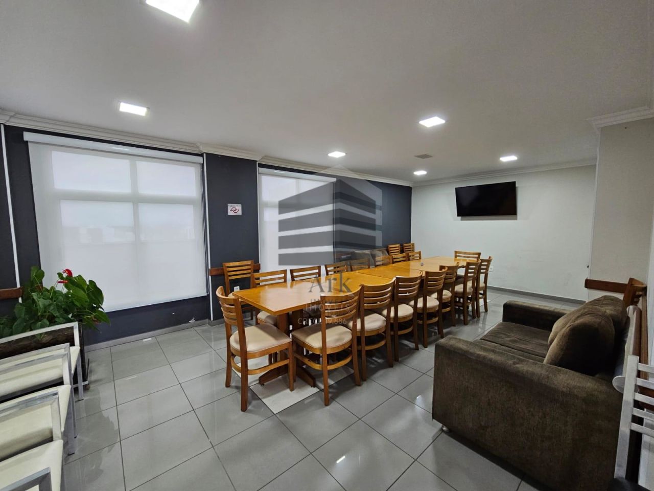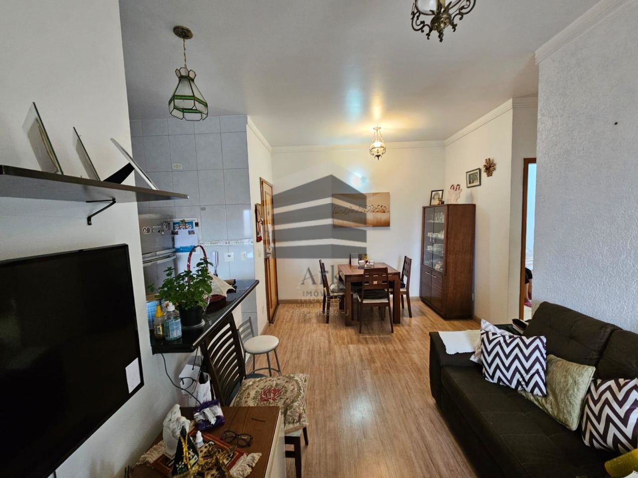 O apartamento tem 58,98m², 2 quartos, sendo uma suíte, 1 banheiro social, sala, cozinha integrada a sala, tem espaço para mesa de jantar ampla, varanda, área de serviço e 1 vaga de garagem.