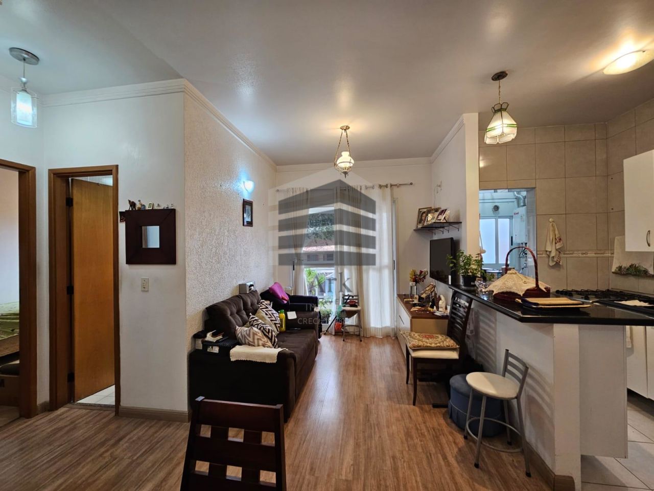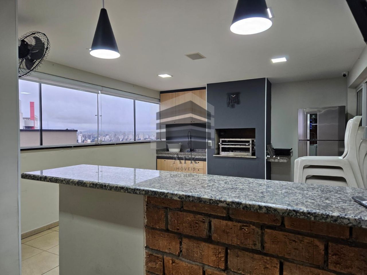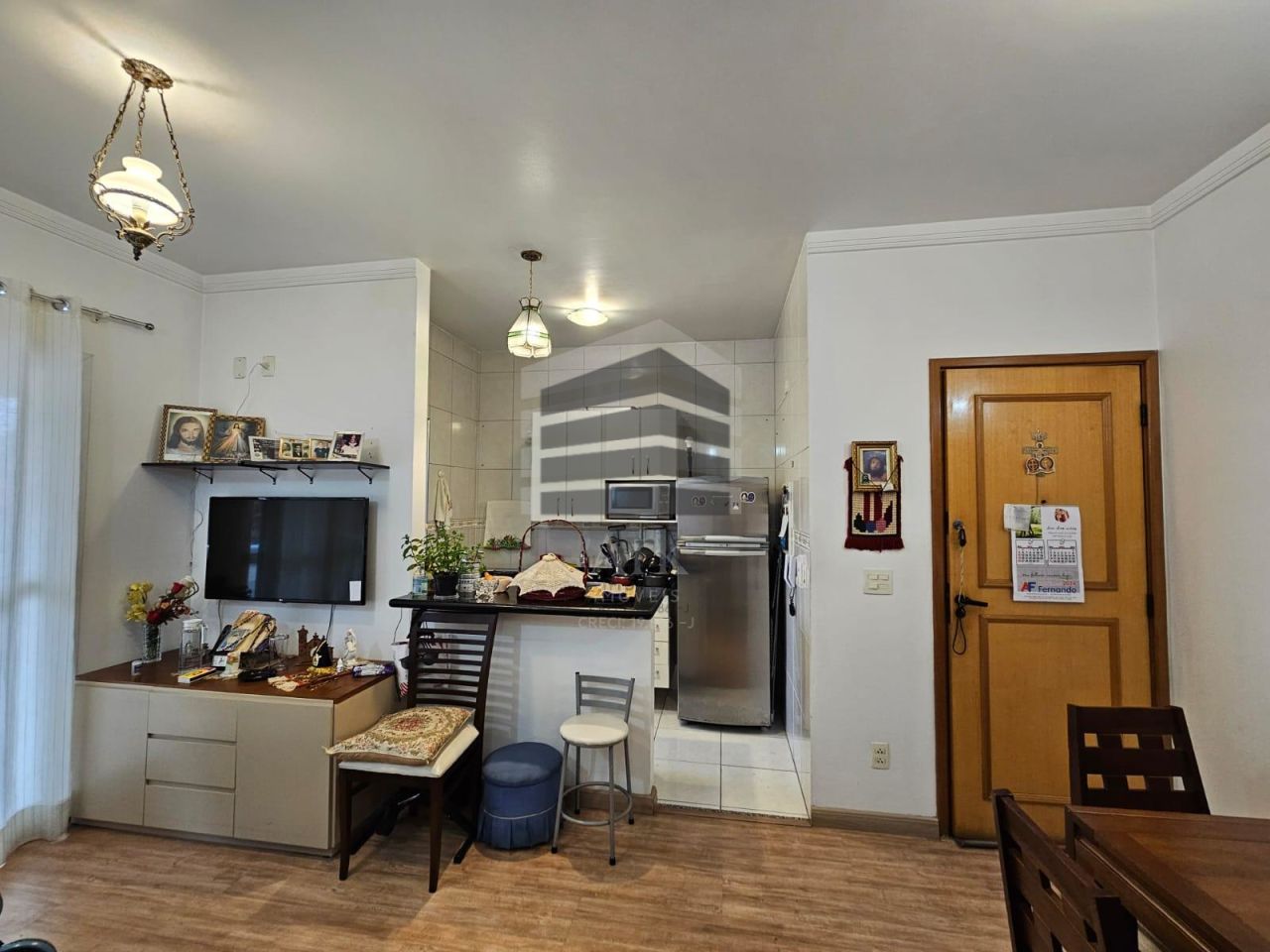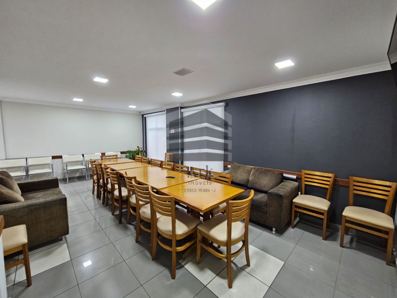 O apartamento tem 58,98m², 2 quartos, sendo uma suíte, 1 banheiro social, sala, cozinha integrada a sala, tem espaço para mesa de jantar ampla, varanda, área de serviço e 1 vaga de garagem.