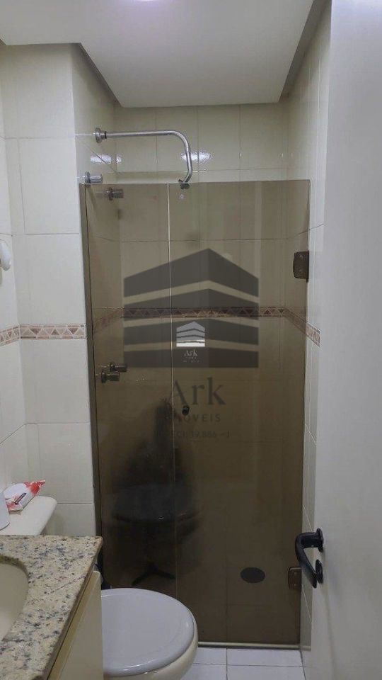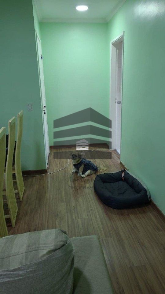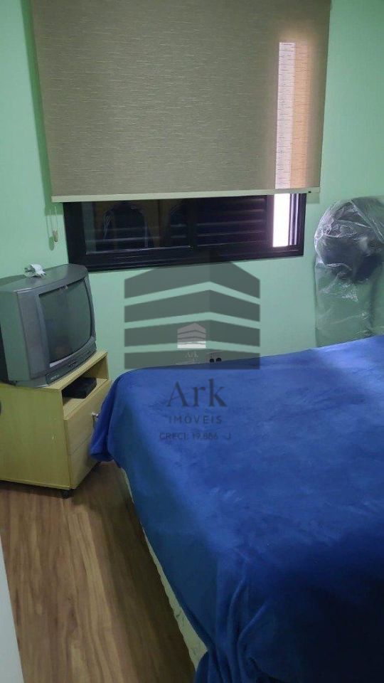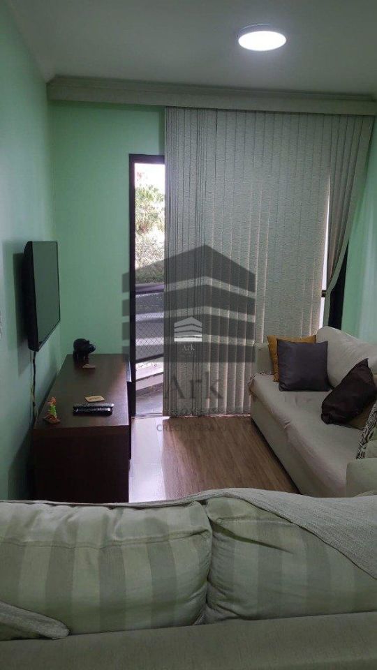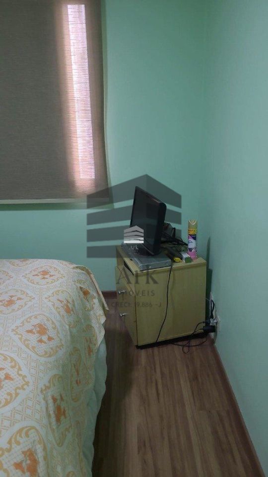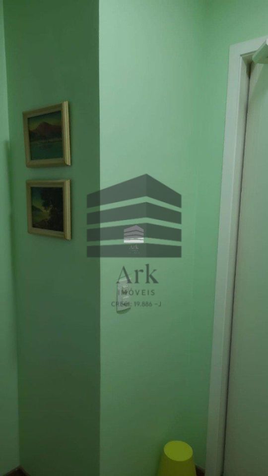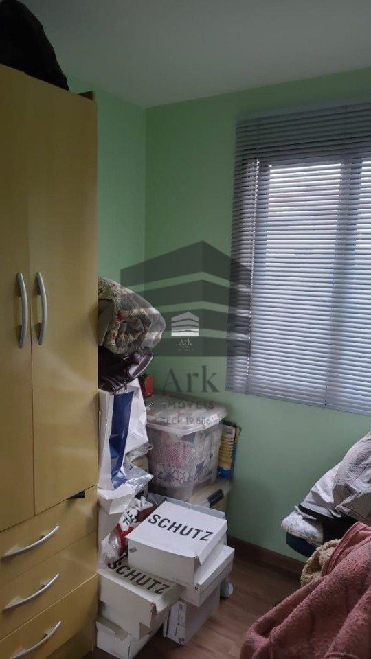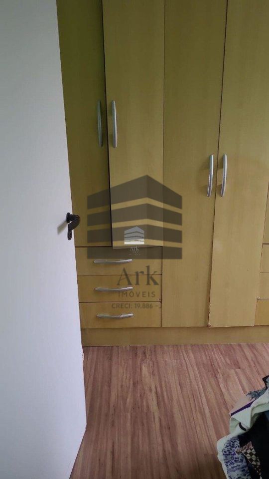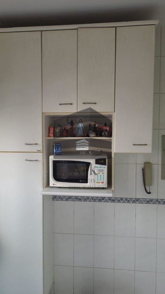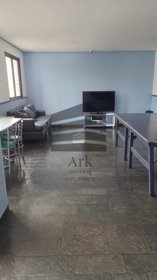 O imóvel tem 2 quartos, sendo 1 suíte, 1 banheiro social, sala, varanda, cozinha, área de serviço e 1 vaga de garagem.