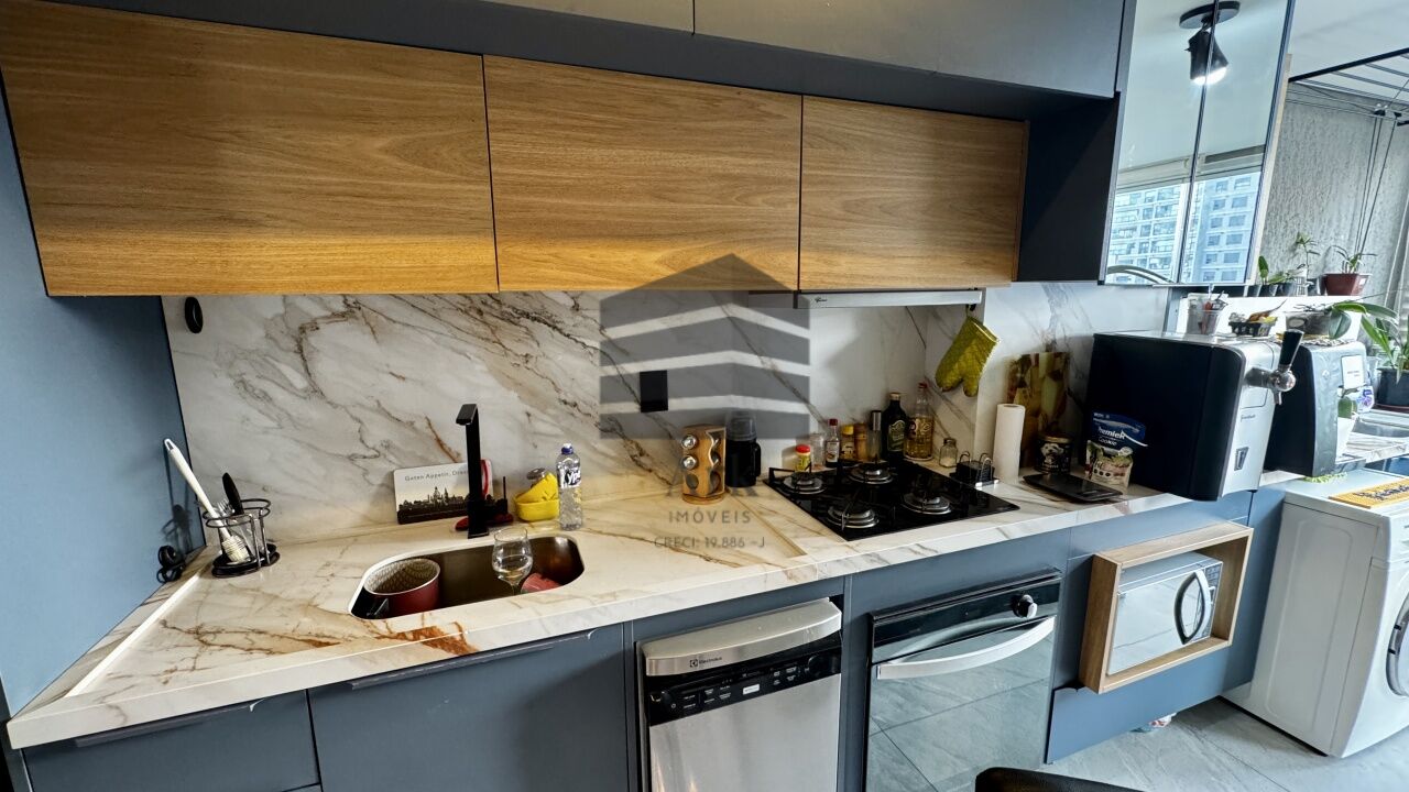 Imóvel com 48m2, distribuídos em 1 dormitório com escritório, mas a planta original possui 2 dormitórios. Possui sala ampla junto à cozinha americana e sacada. Possui banheiro social.