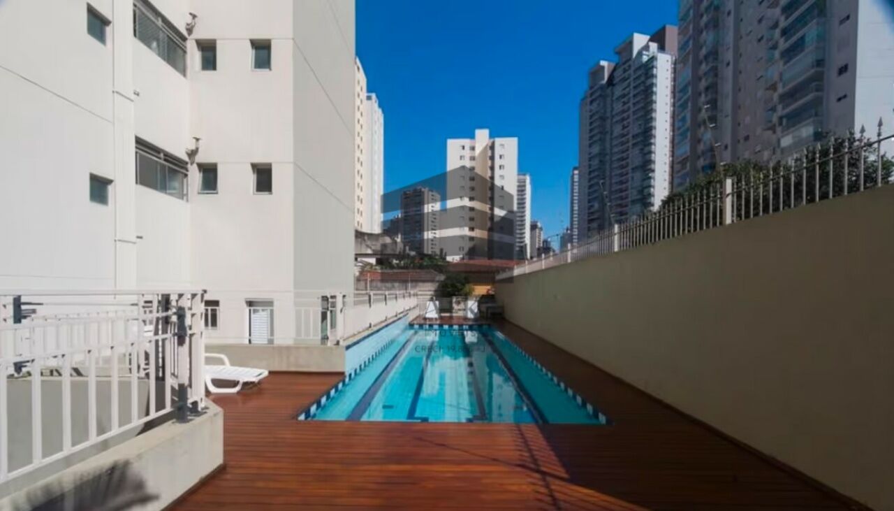 O condomínio tem piscina, academia, brinquedoteca e uma linda área verde!