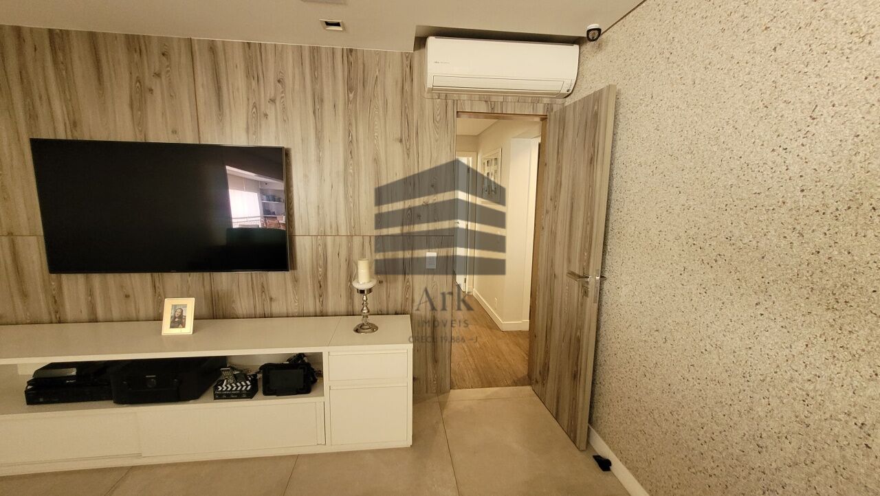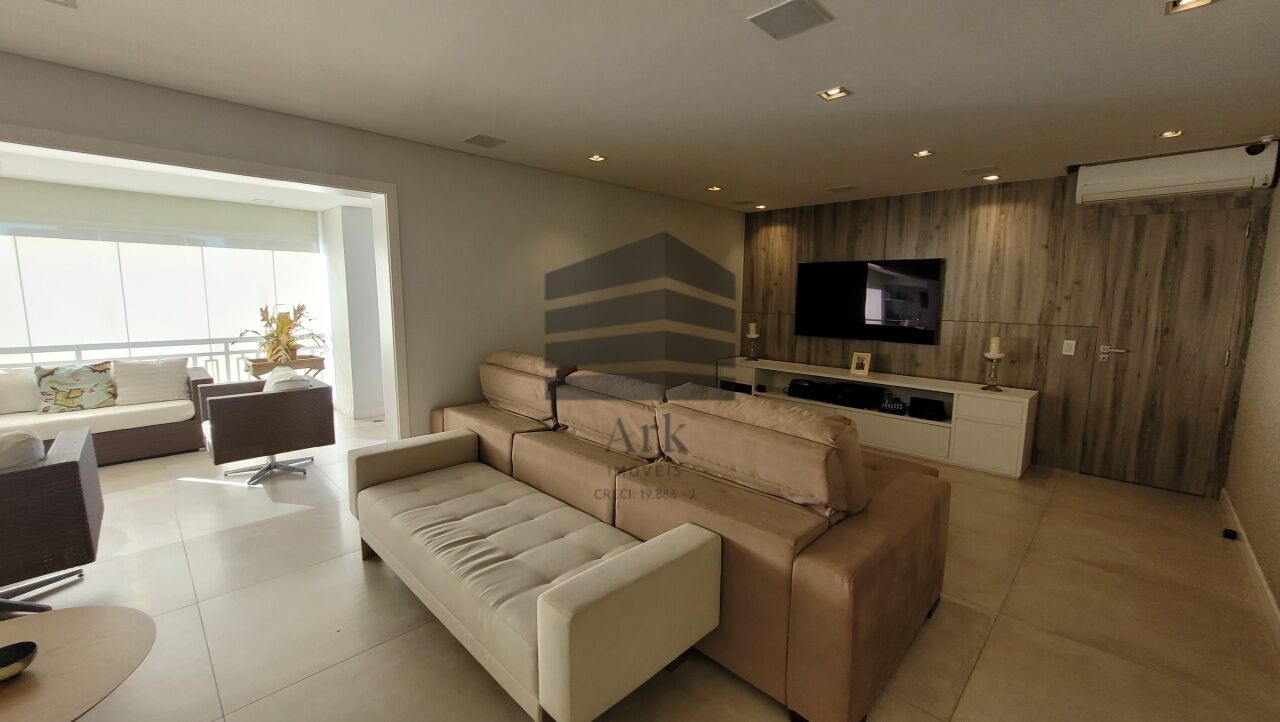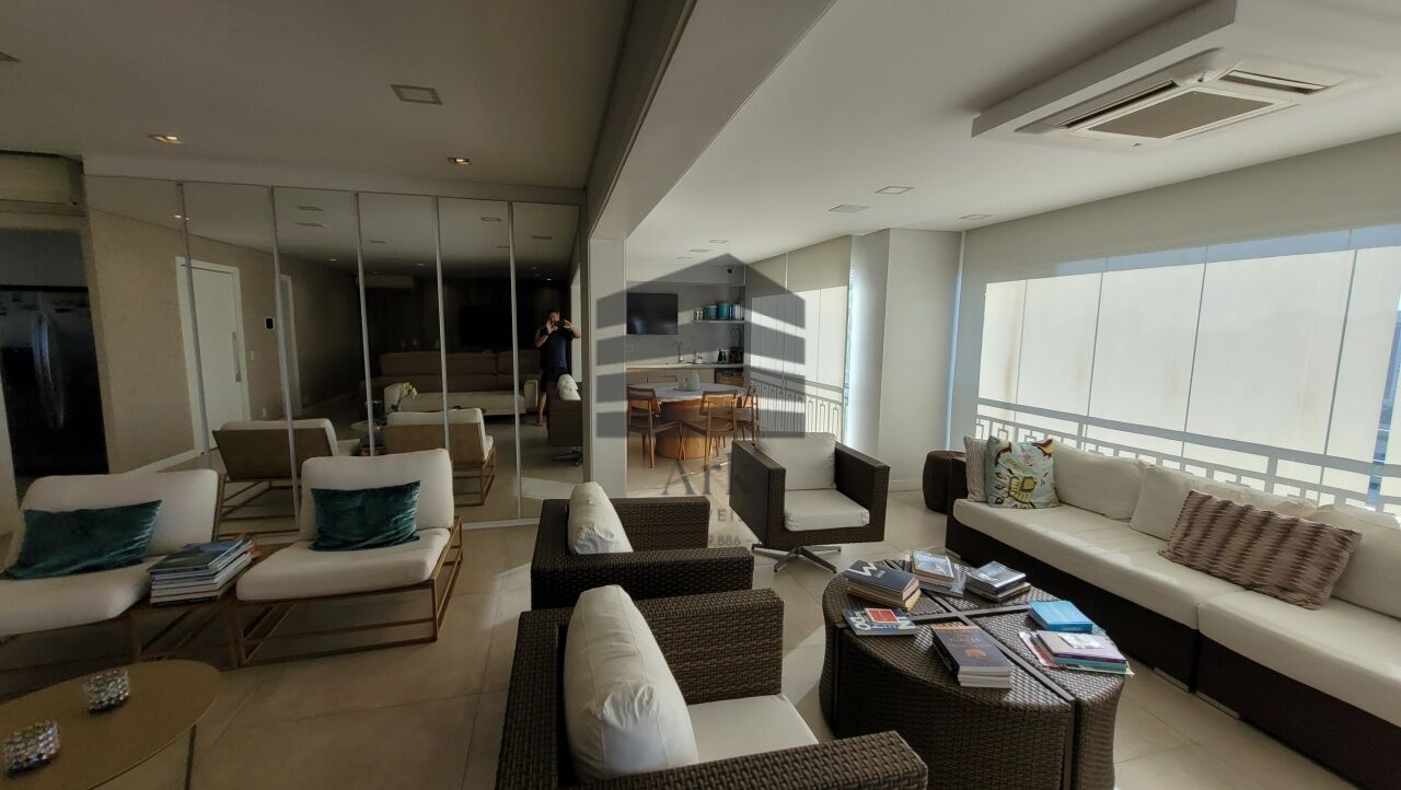 Ampla sala integrada à varanda, com fechamento em vidros retráteis, proporcionando excelente iluminação natural. O living comporta confortavelmente três ambientes e é totalmente automatizado.