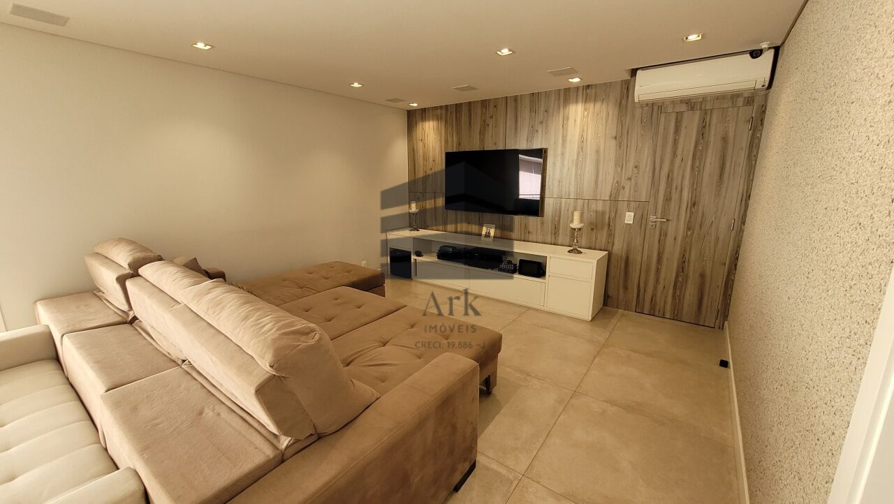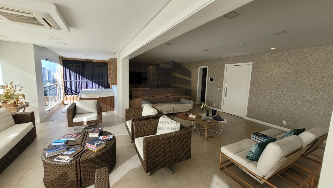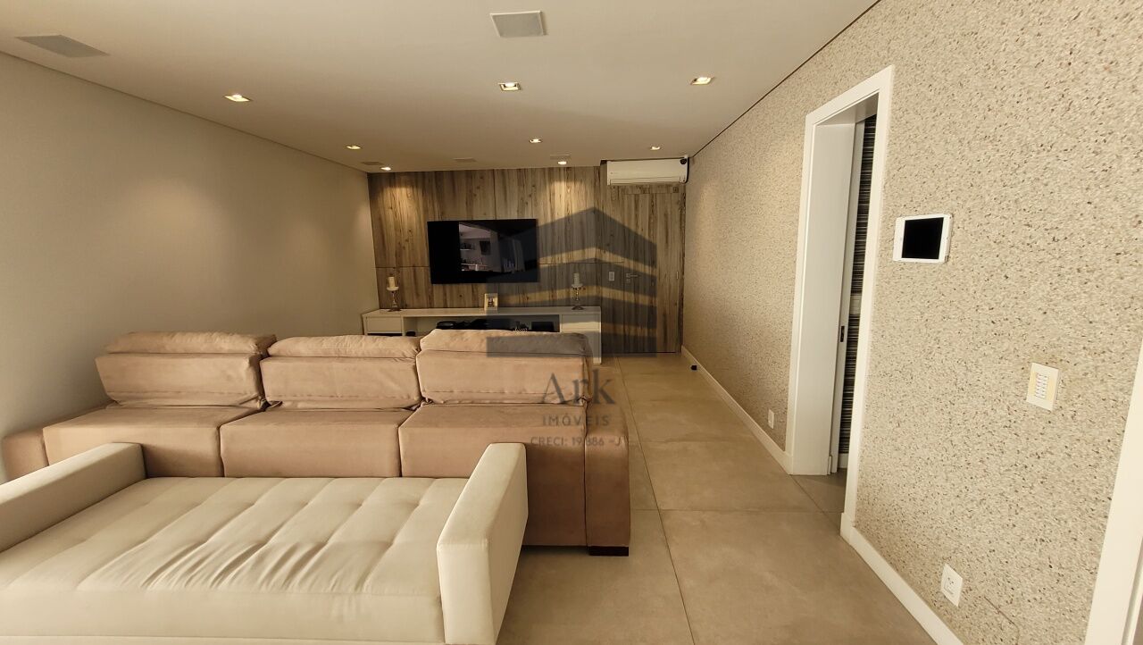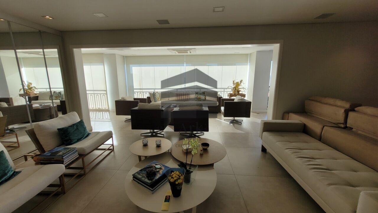 Ampla sala integrada à varanda, com fechamento em vidros retráteis, proporcionando excelente iluminação natural. O living comporta confortavelmente três ambientes e é totalmente automatizado.