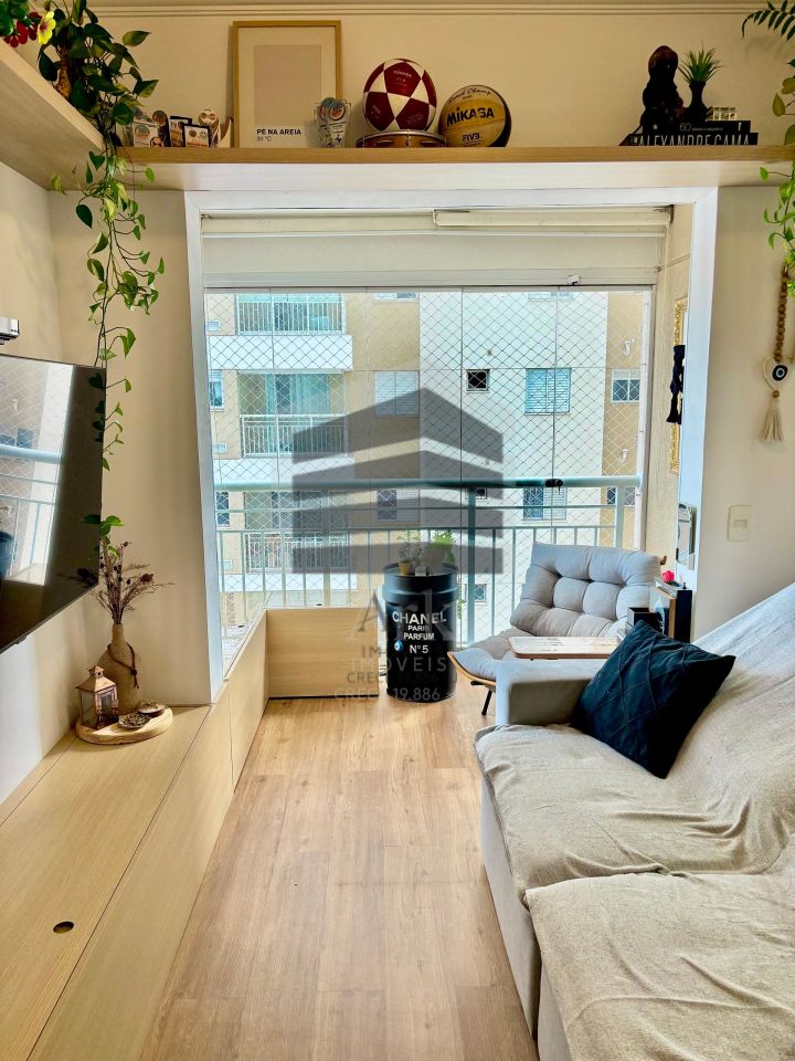 Apartamento tem 60m totalmente planejado com marcenaria, cozinha americana, varanda nivelada.