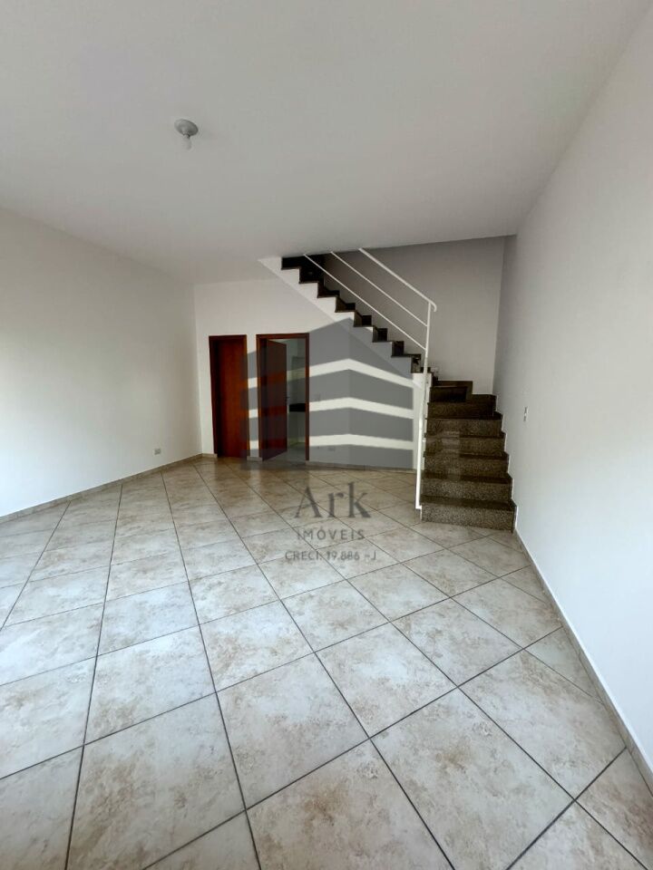 No térreo, ampla sala para dois ambientes, lavabo, cozinha com armários planejados e bancada em granito, área de serviço e quintal privativo.