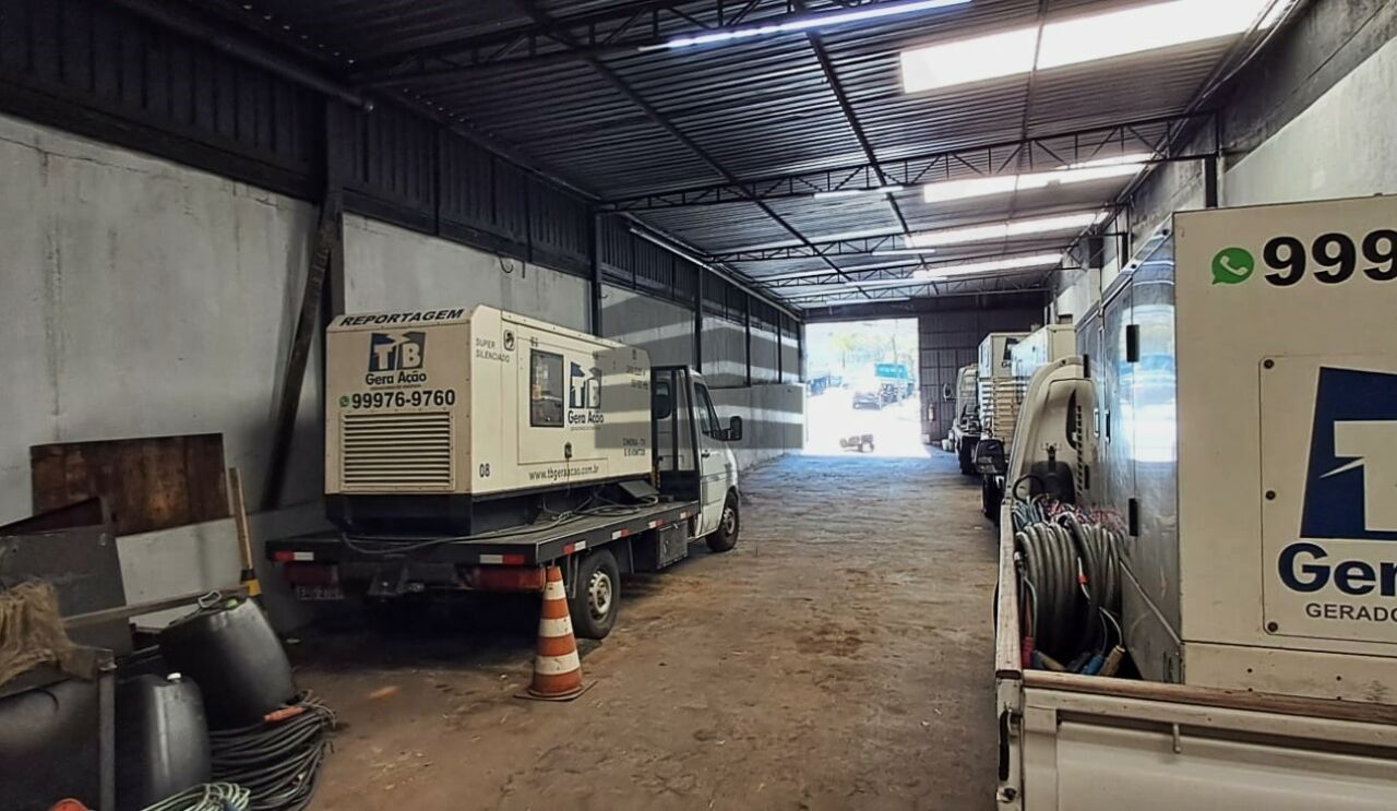 Galpão com 280m² (8 x 35), portão eletrônico (3,60 m de largura x 3,45 m de altura), escritório, 1 banheiro, copa e mezanino.