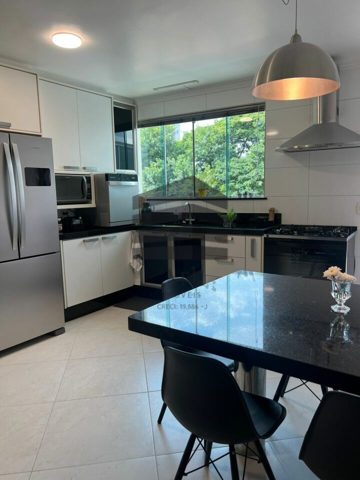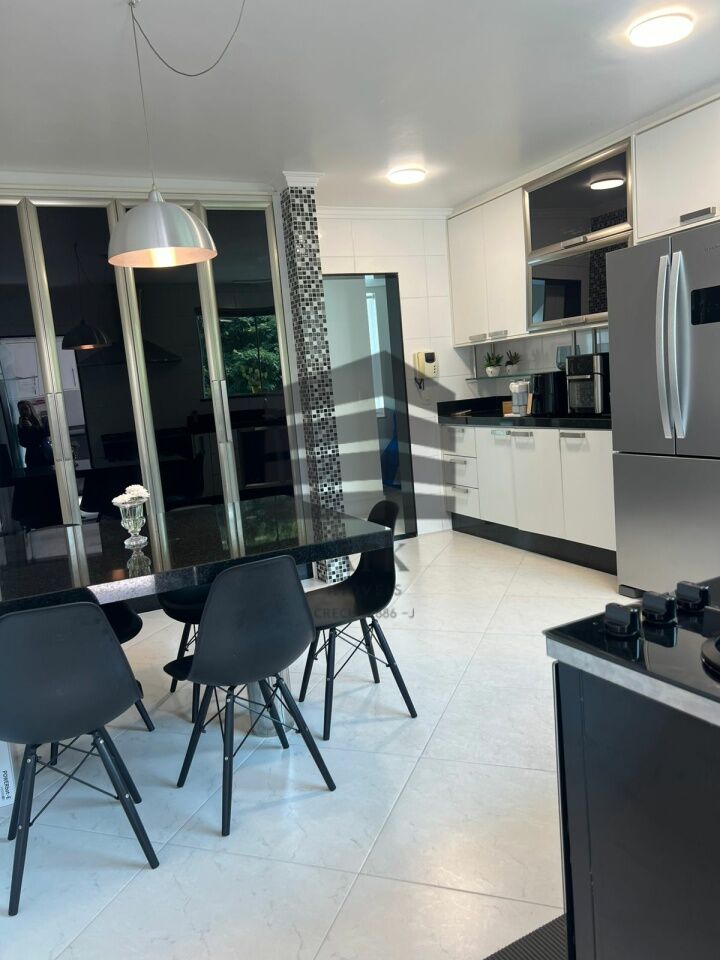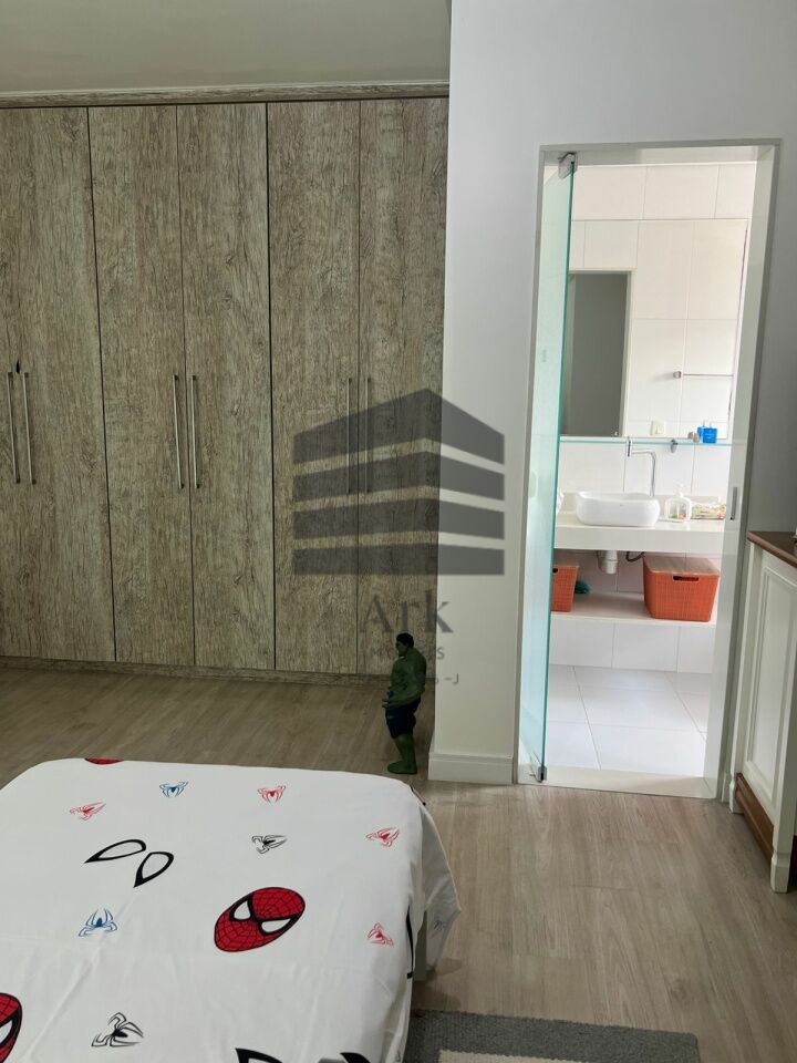 Sobrado 198m² são 3 suítes com armários e ar condicionado, cozinha com armários, sala com lareira e sacada, lavabo, fino acabamento, quintal com churrasqueira, espaço gourmet. São 8 vagas de garagem, mais 2 vagas descoberta, depósito e banheiro no quintal. Venha conhecer, marque sua visita.